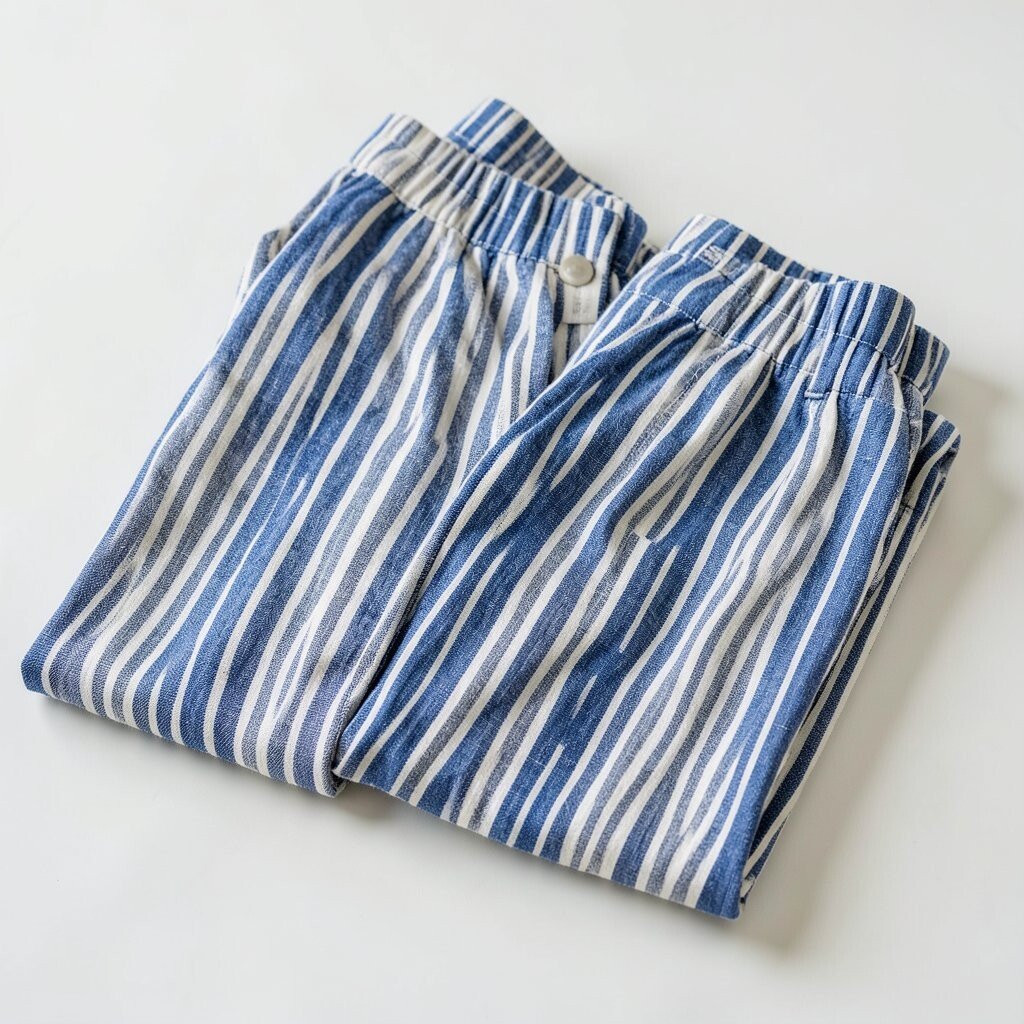 Striped linen sets feel cool, breezy, and easy to wear. The fabric has a light texture that makes the stripes look relaxed and natural.