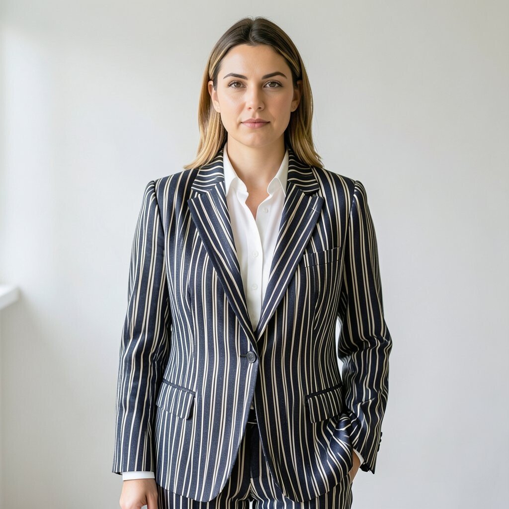 Vertical office stripes give a neat, polished look that feels ready for work. The straight lines make clothes look clean and tall.