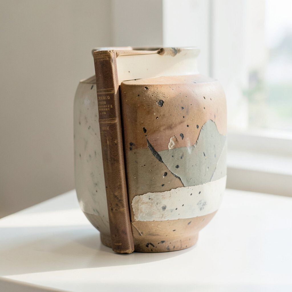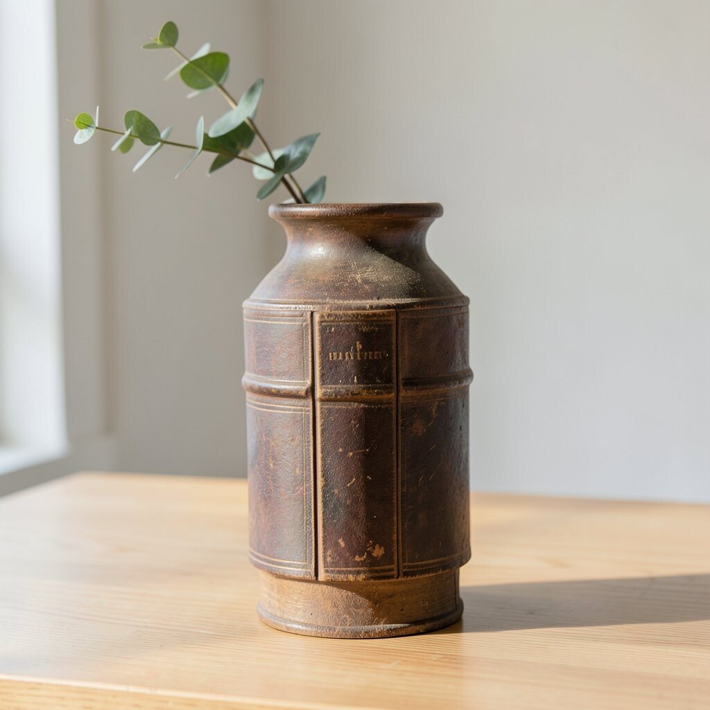 Imagine a vase crafted from the spine of a classic hardcover book. This idea brings the charm of vintage literature into your home.