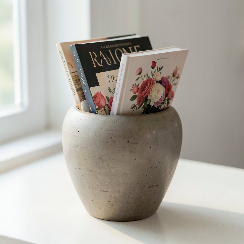 Old volumes with ornate covers can turn into stunning vases. Their unique aesthetic brings history and art into your space.