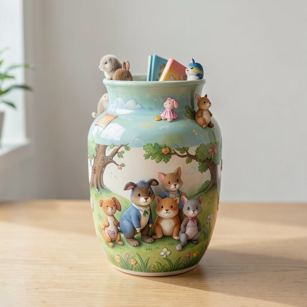 Children’s books can create whimsical vases. Their illustrations and stories add a playful element.