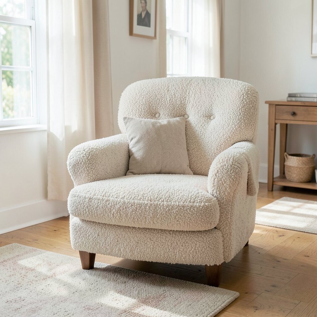 A boucle armchair can be a standout piece in any living room. Its plush fabric and sturdy design are inviting.