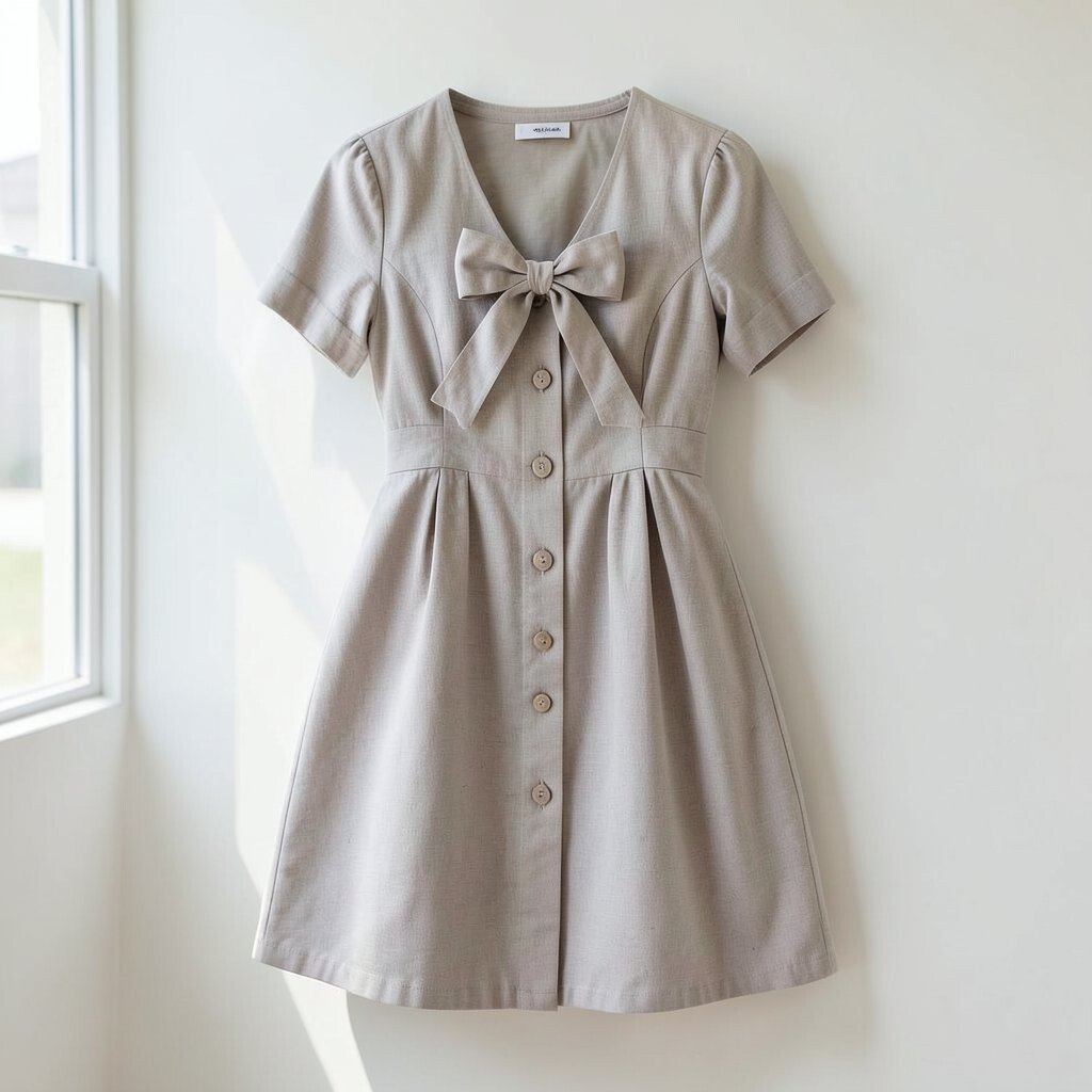 A button-down design adds a touch of formality to your dress. A button-down bow mini dress is versatile and chic.