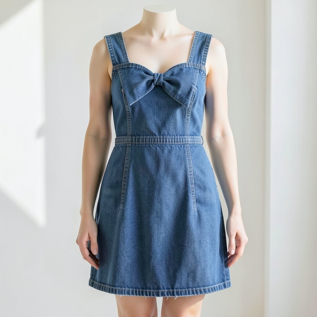 Denim is a classic fabric that never goes out of style. A denim bow mini dress is casual yet stylish.