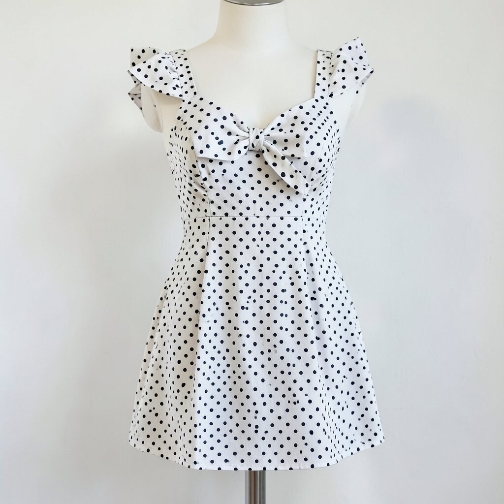 Bring a playful vibe to your outfit with a polka dot bow mini dress. Its pattern is both nostalgic and fresh.