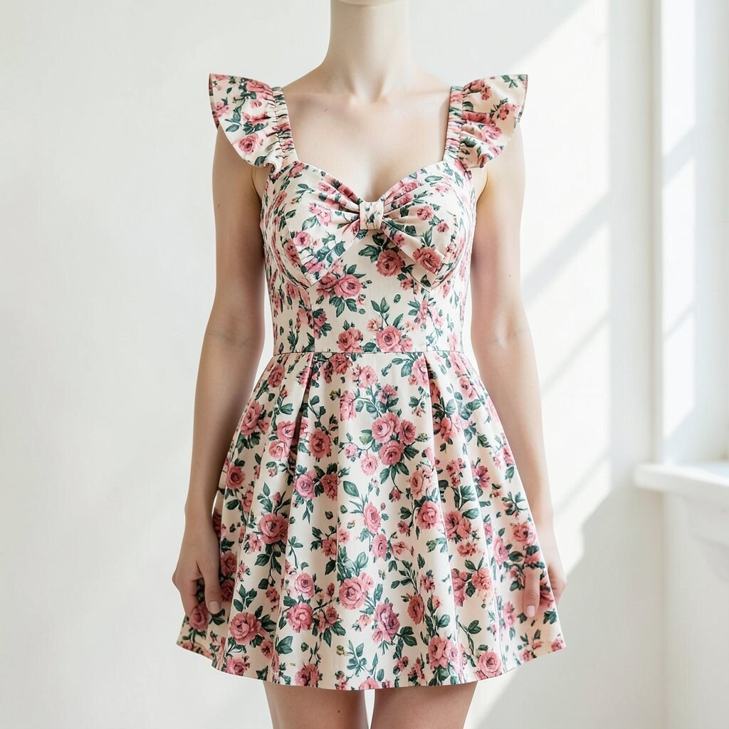 A floral bow mini dress is a celebration of springtime beauty. This design is perfect for garden parties or brunches.