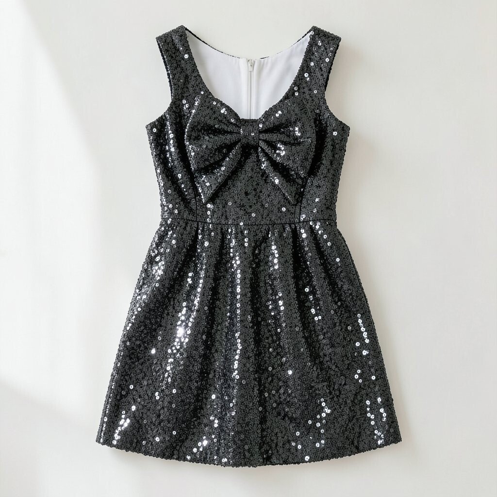 Shine bright with a sequin bow mini dress. This outfit is ideal for parties and festive occasions.