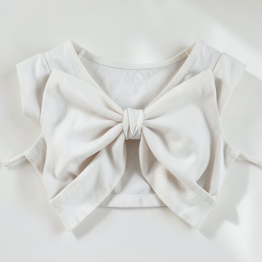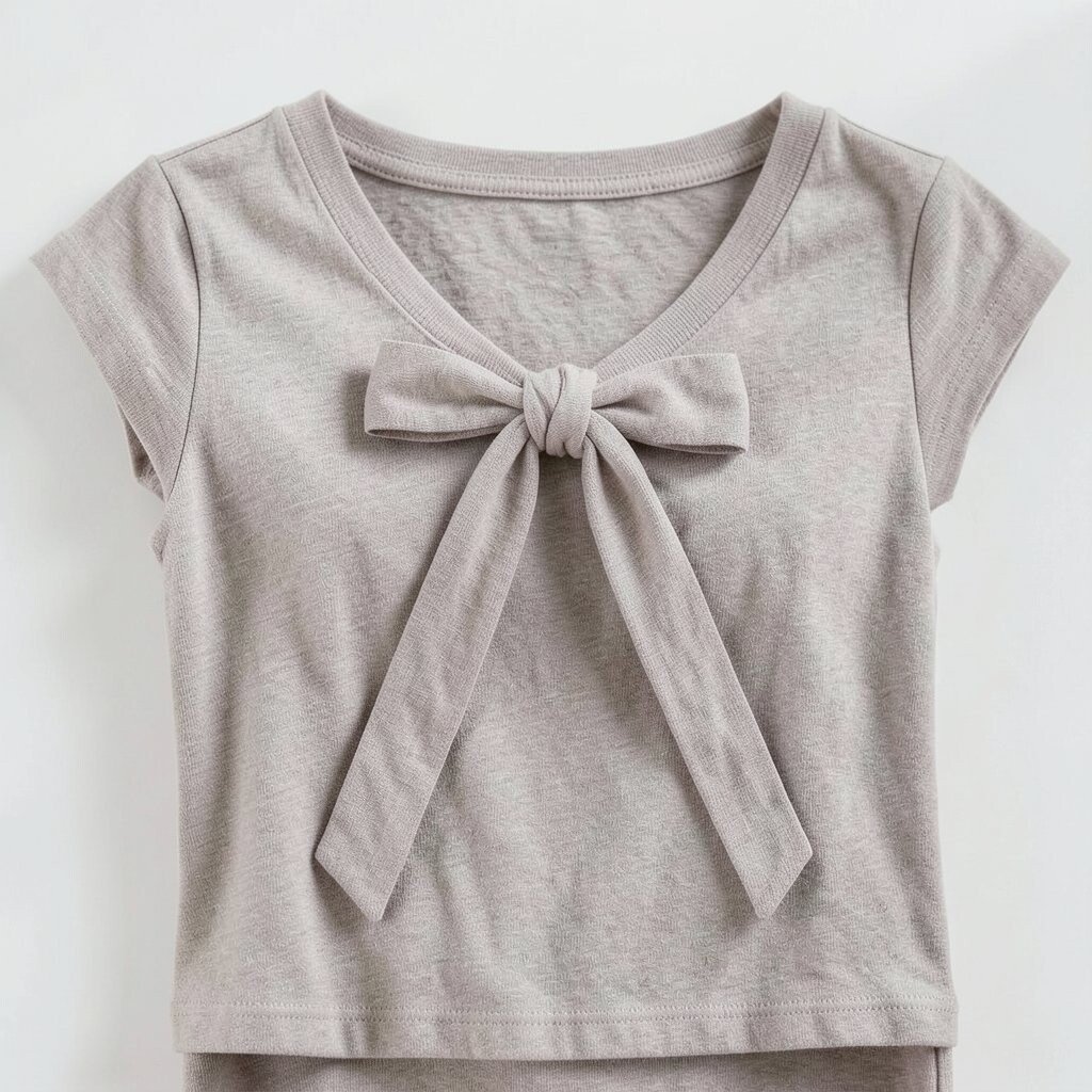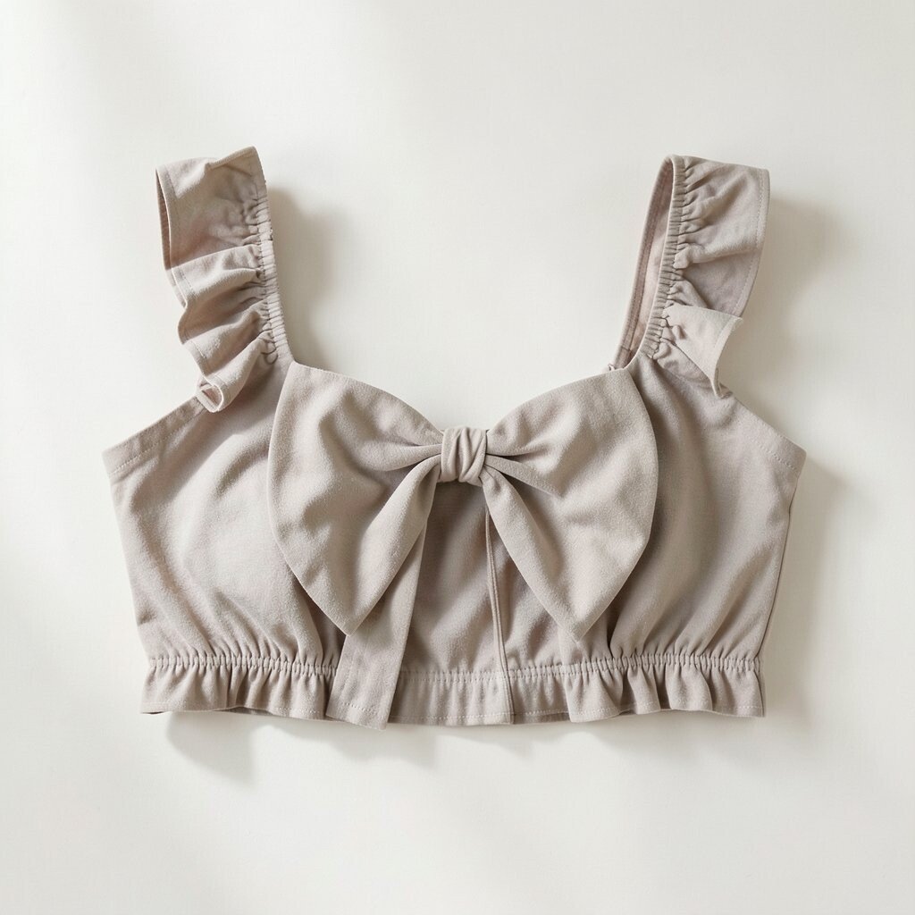 The crop bow top is a trendy and youthful choice. Its playful design is perfect for those who love to show a bit of midriff.
