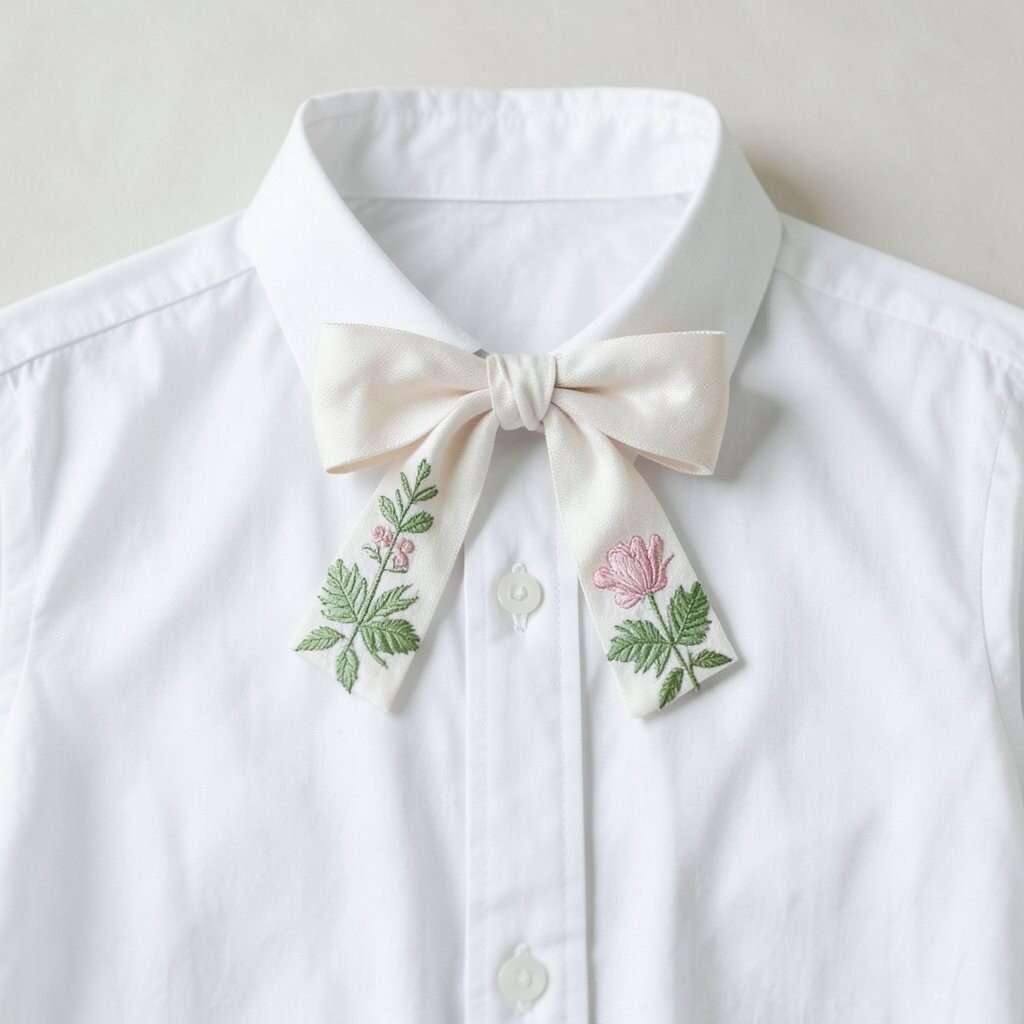 The embroidered bow shirt adds a unique and artistic touch to your wardrobe. The intricate embroidery enhances the elegance of the bow detail.