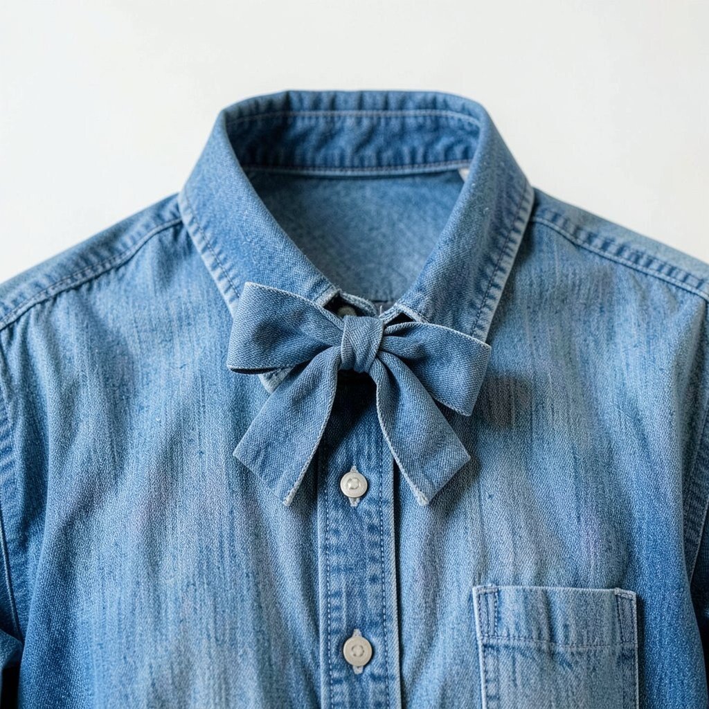 The denim bow shirt is a casual, laid-back option with a twist. The bow detail adds a feminine touch to the rugged denim fabric.