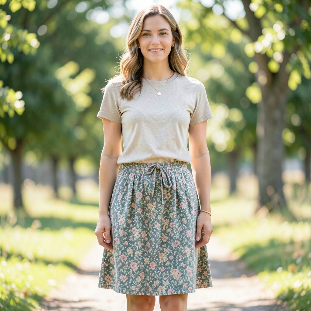 A vintage tee paired with a midi skirt creates a retro-inspired look. Choose a graphic tee and a flowy skirt for a laid-back vibe. Sneakers or ankle boots complete this fun ensemble.