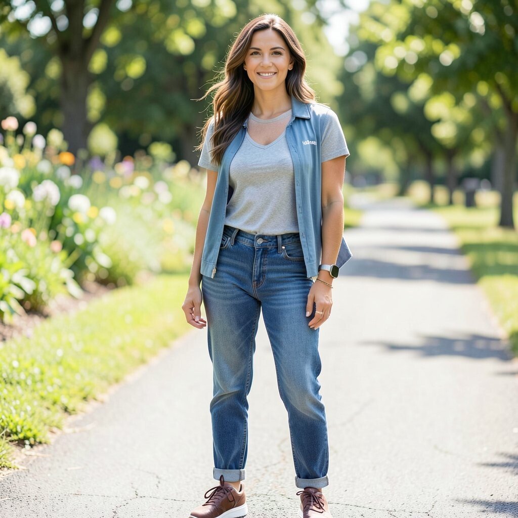 This outfit is not only stylish but incredibly comfortable. The denim-on-denim look is trending, and you can personalize it with pins or patches on your jacket. Best part? You can find these pieces at any budget-friendly store.