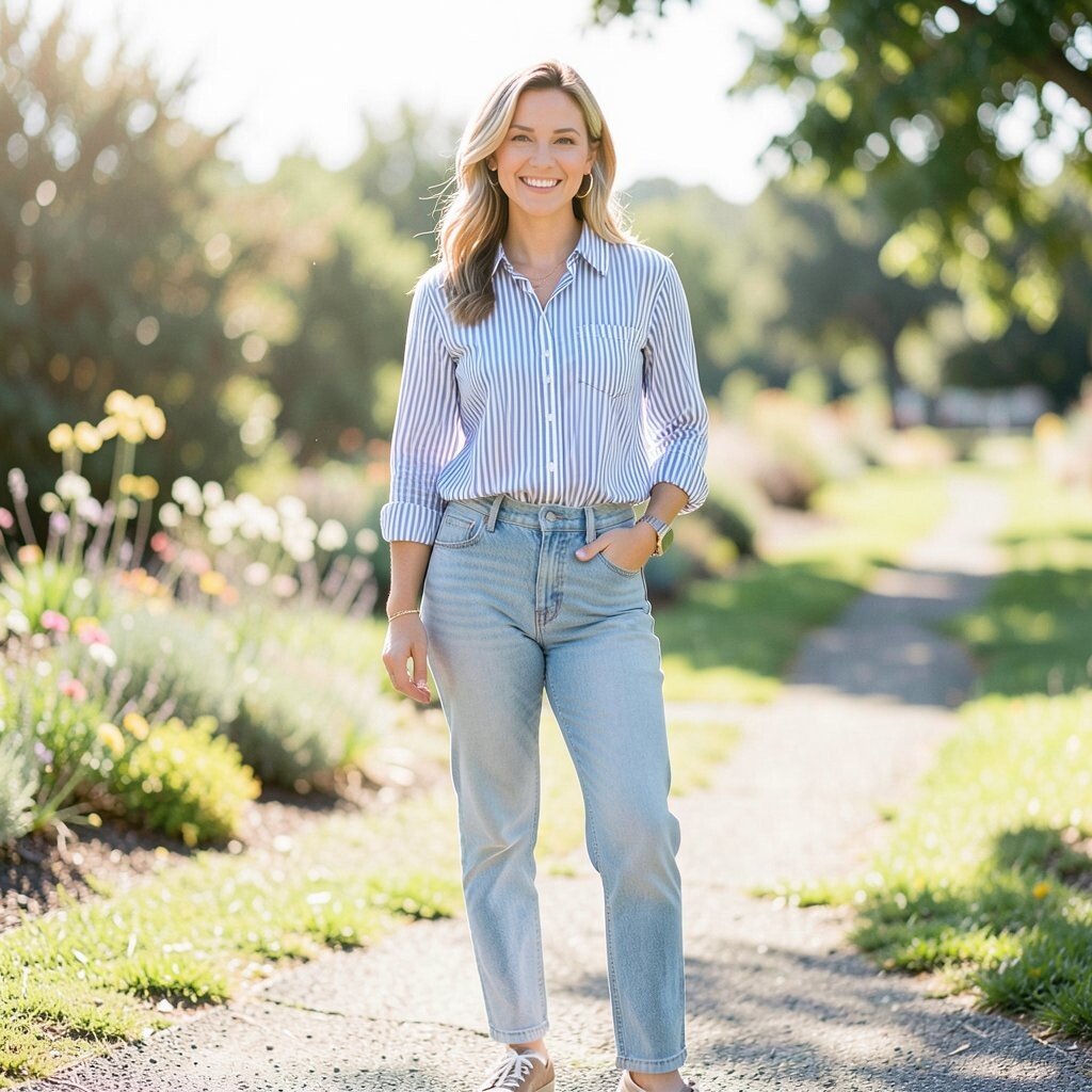 The classic striped shirt is a wardrobe staple that never disappoints. Pair it with high-waisted shorts or jeans for a nautical feel. Throw on some loafers or white sneakers for a clean finish.