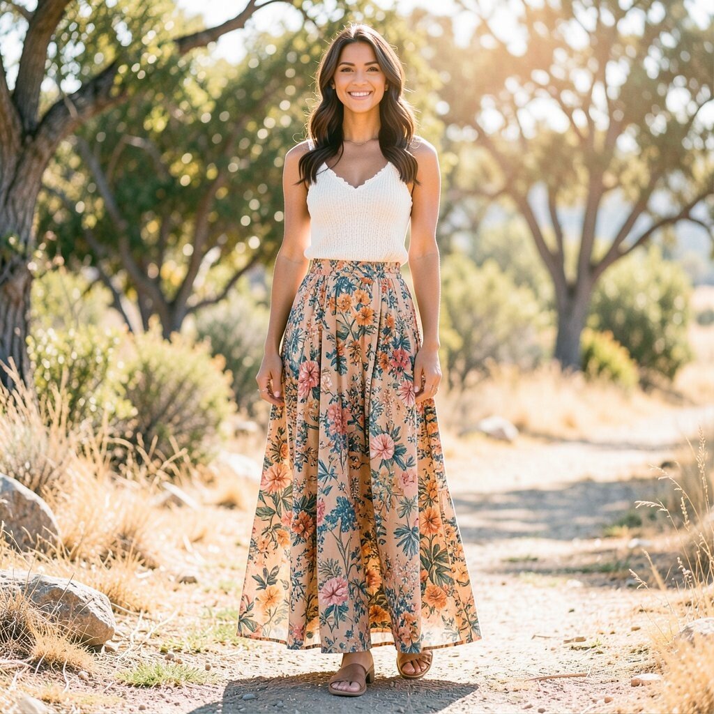 A flowy maxi skirt paired with a simple tank top gives off a boho-chic vibe. Choose earthy tones or vibrant patterns to express your personality. Sandals or ankle boots work well to complete this look.