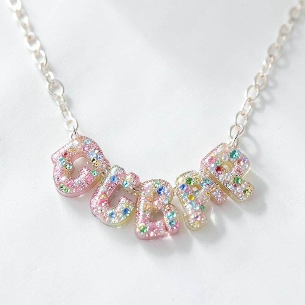 Glitter bubble letter necklaces catch the light with every move, adding a touch of glamour. They sparkle and shine, making them perfect for special occasions.