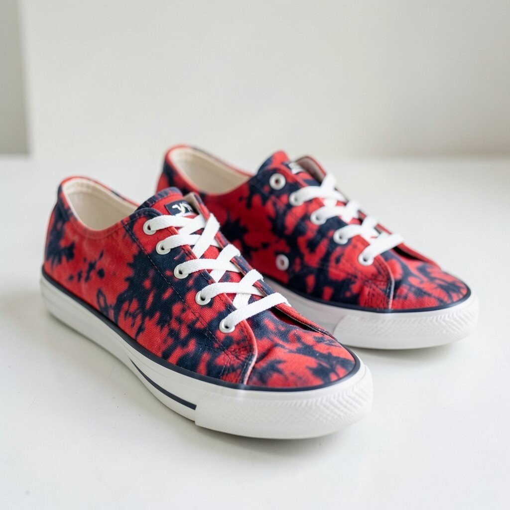 Red and navy tie-dye sneakers have a bold, sporty feel that works well with casual clothes. The two-color mix gives the shoes a strong look while still keeping the canvas style relaxed.