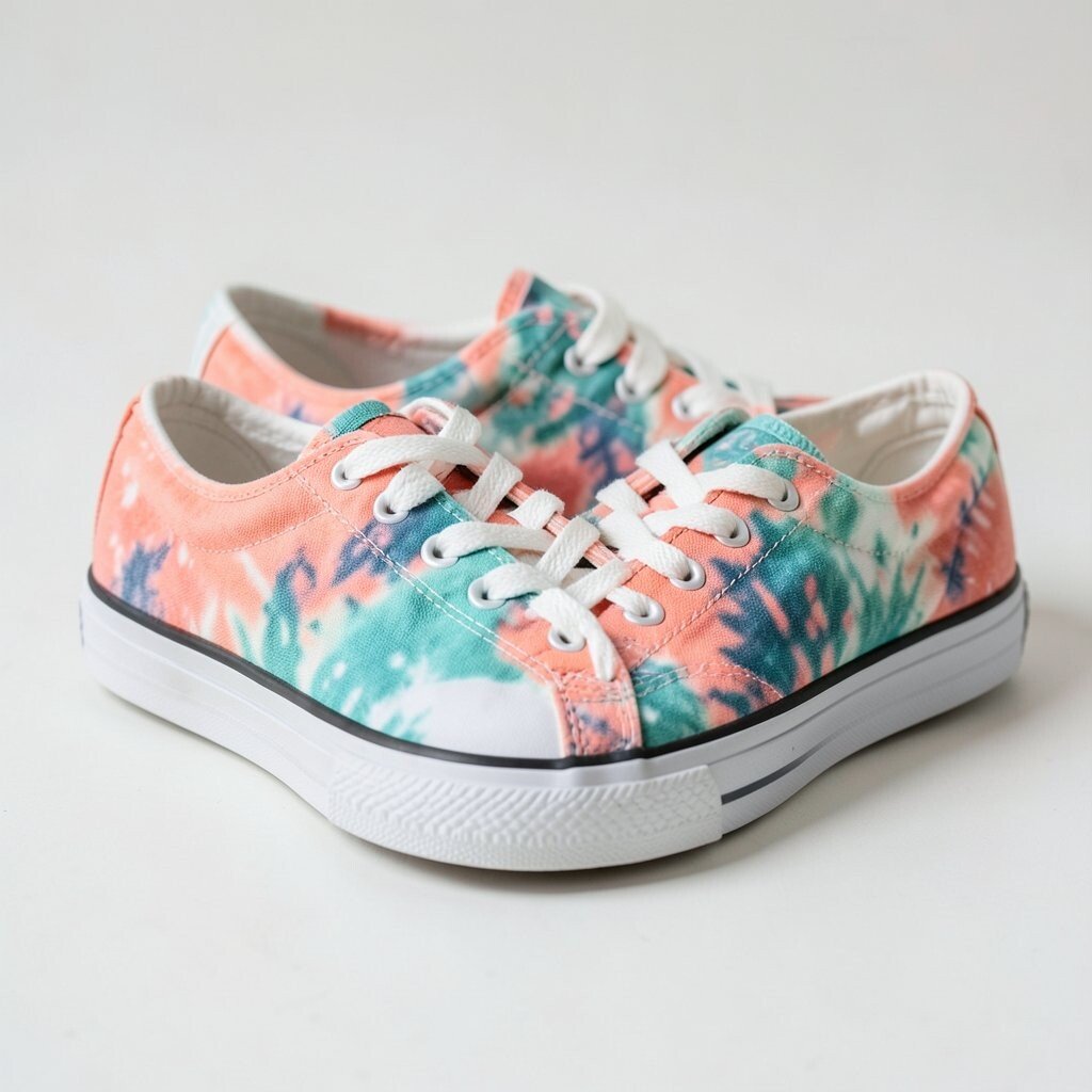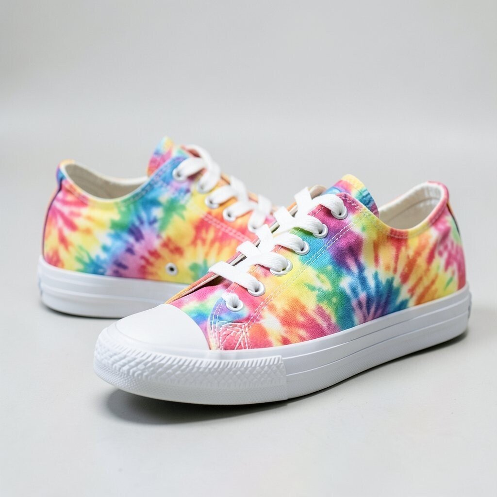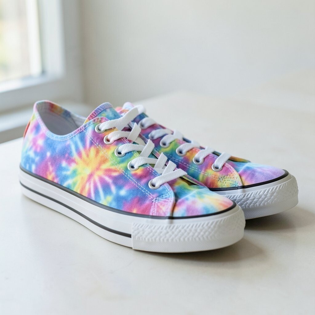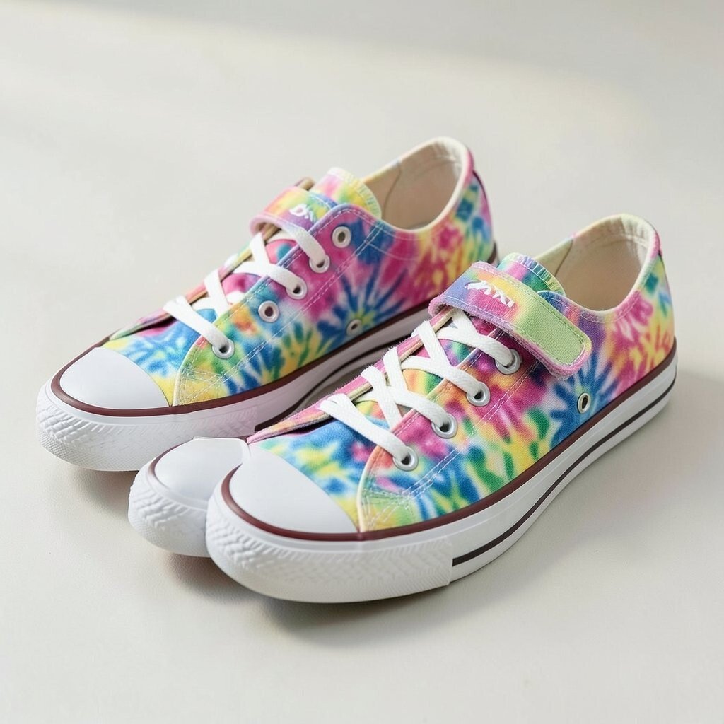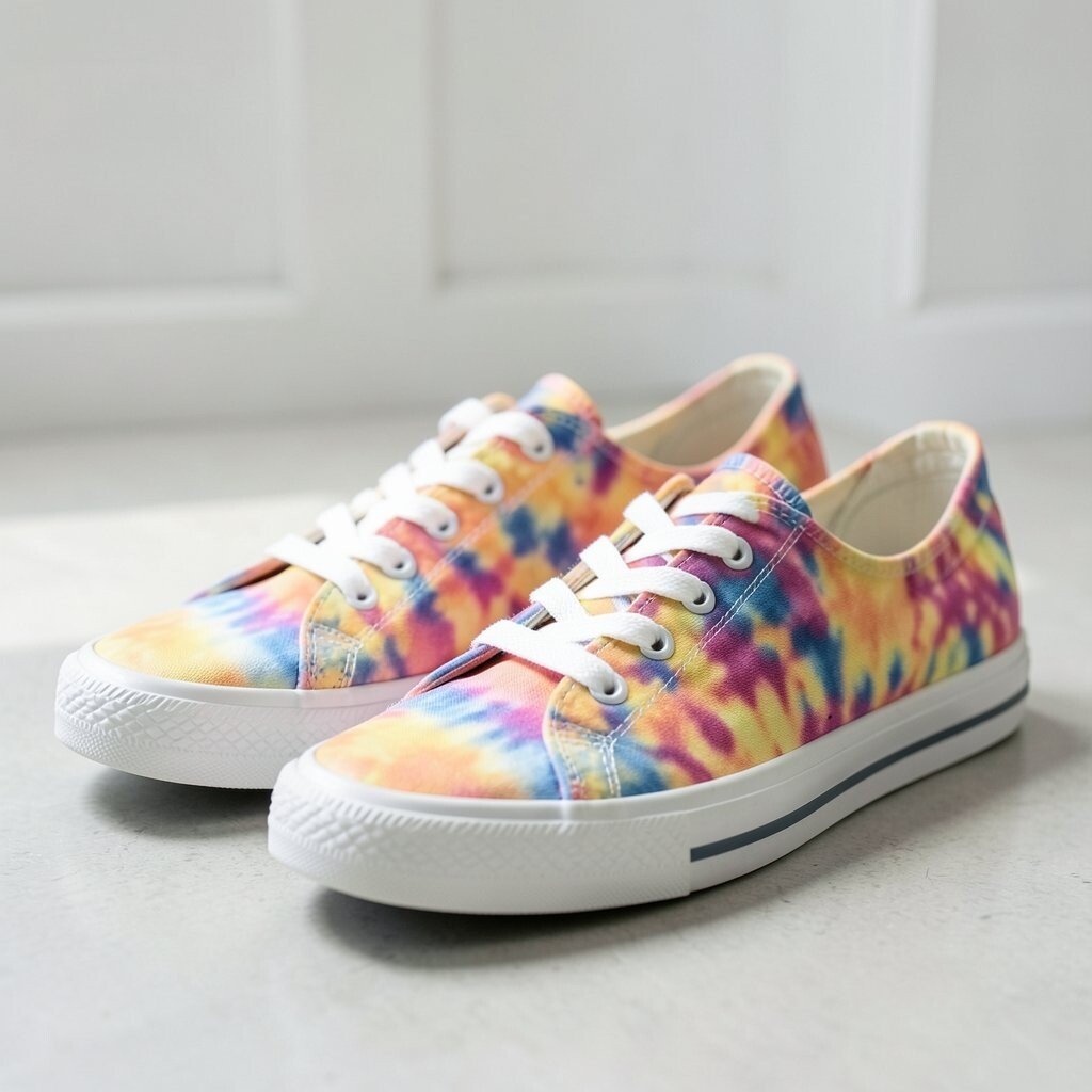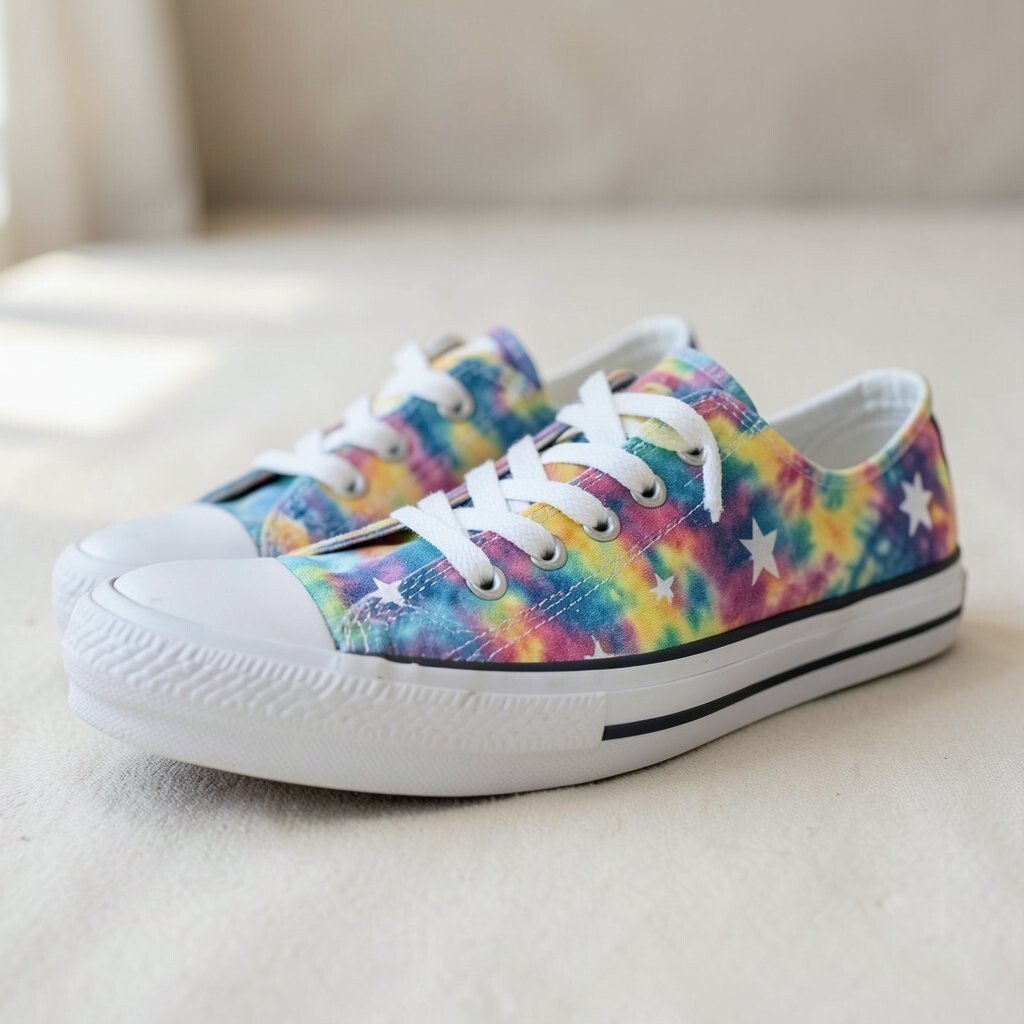 Metallic accents add a shiny touch to tie-dye canvas sneakers, making them feel a little dressier. The mix of soft fabric and sparkle creates a fun contrast.