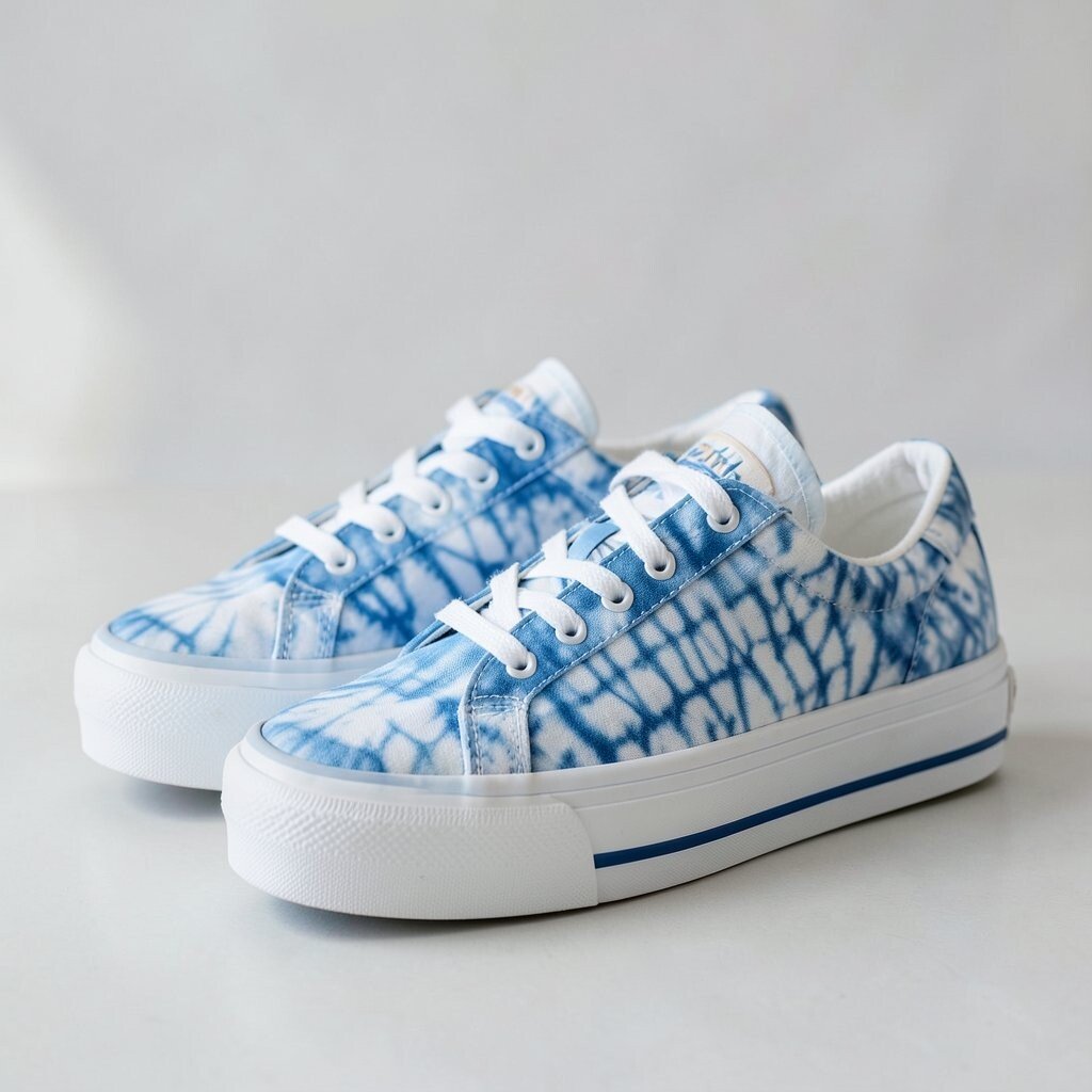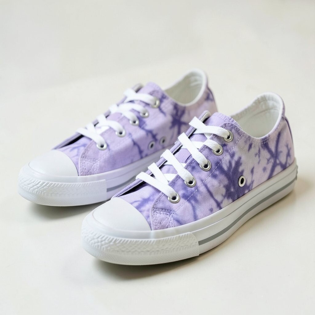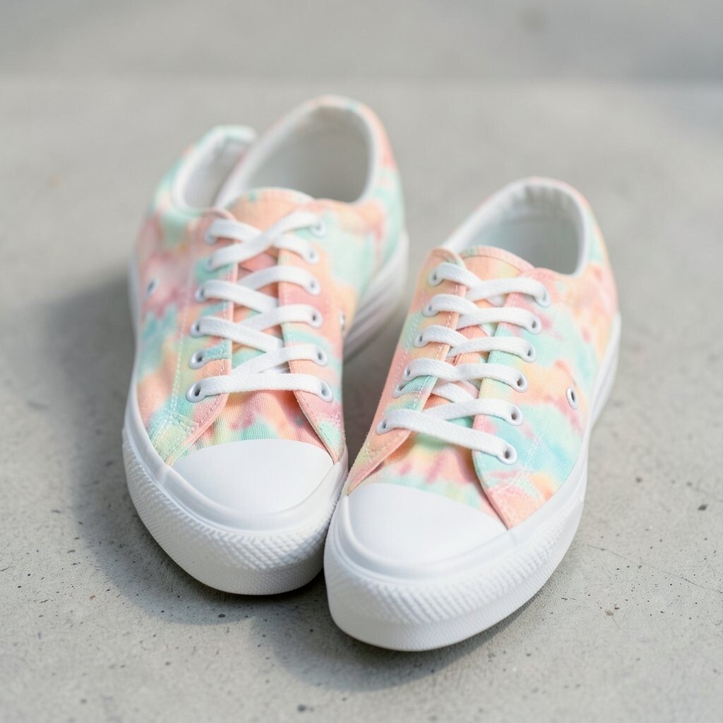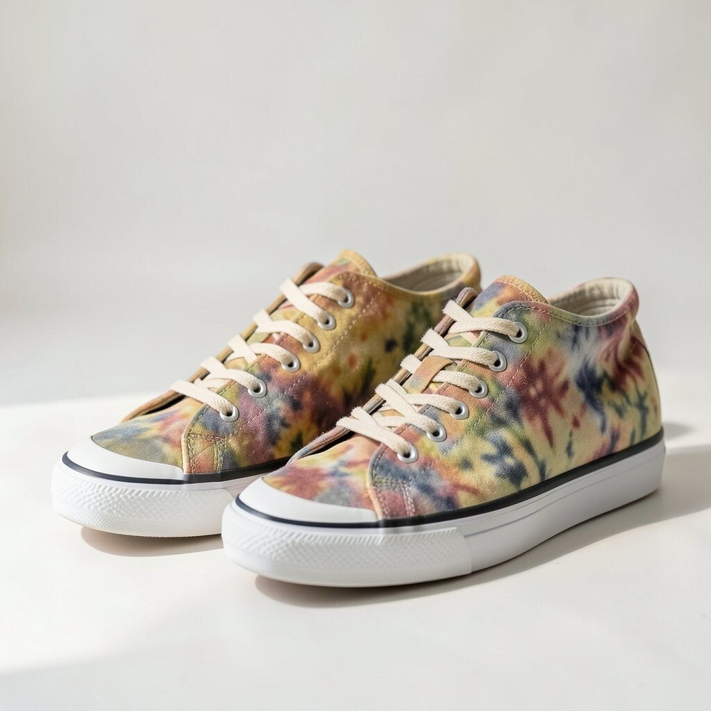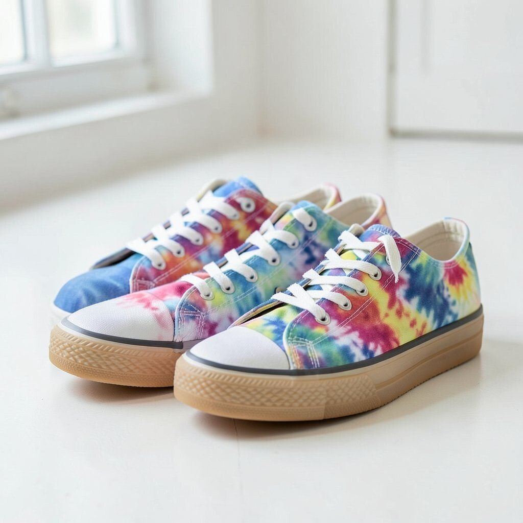 Metallic accents add a shiny touch to tie-dye canvas sneakers, making them feel a little dressier. The mix of soft fabric and sparkle creates a fun contrast.