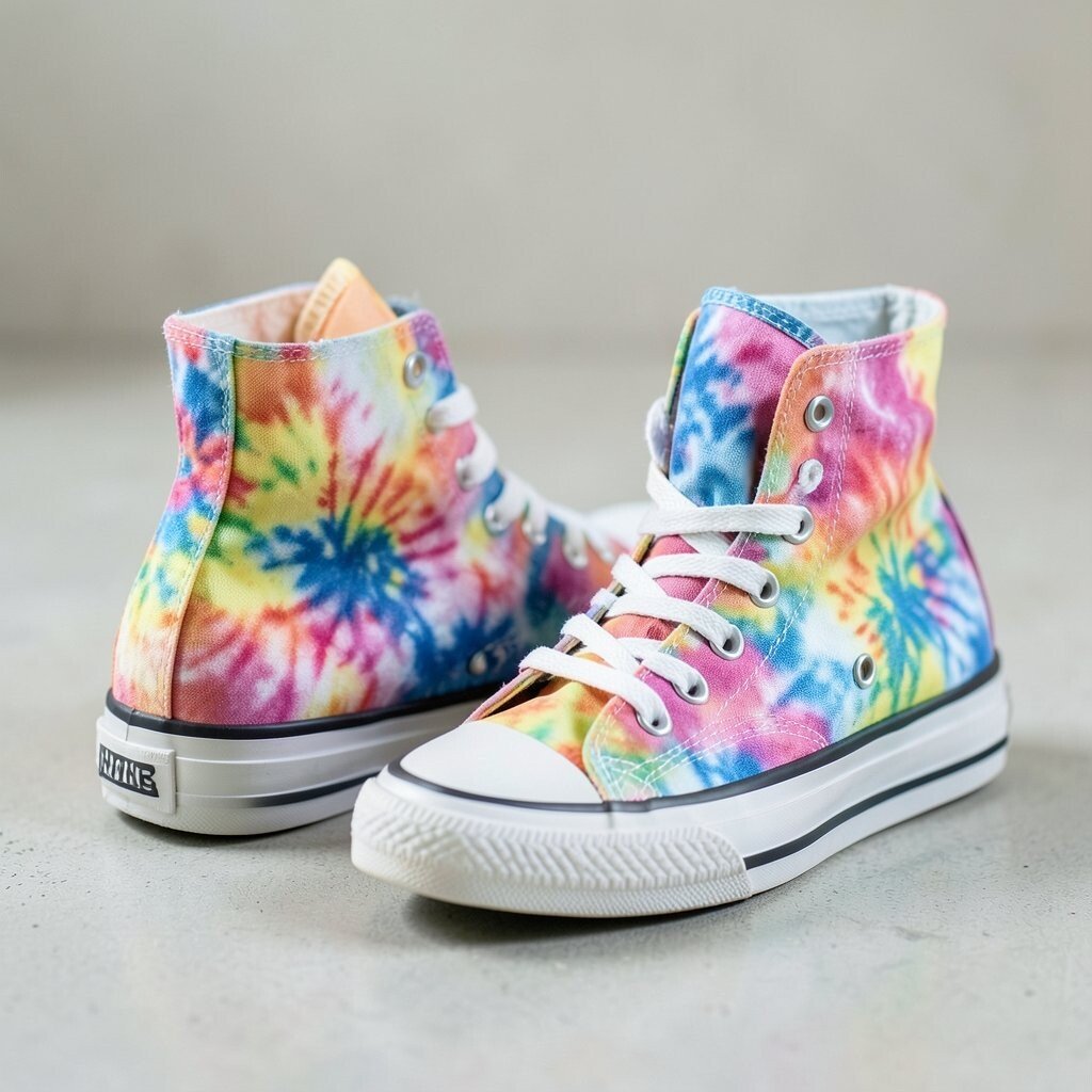 They can make your legs look longer when paired with cuffed jeans or shorts. Try matching one color in the shoe to your shirt for a neat style link, or wear them with all-black clothes so the tie-dye stands out. Cost can vary a lot here, but canvas high-tops often give a lot of style for the money.