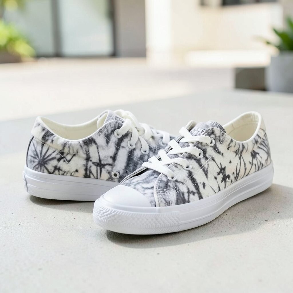 Monochrome tie-dye sneakers use one color family, like black and gray or blue and navy, to make a softer swirl effect. The result is stylish without feeling too busy.