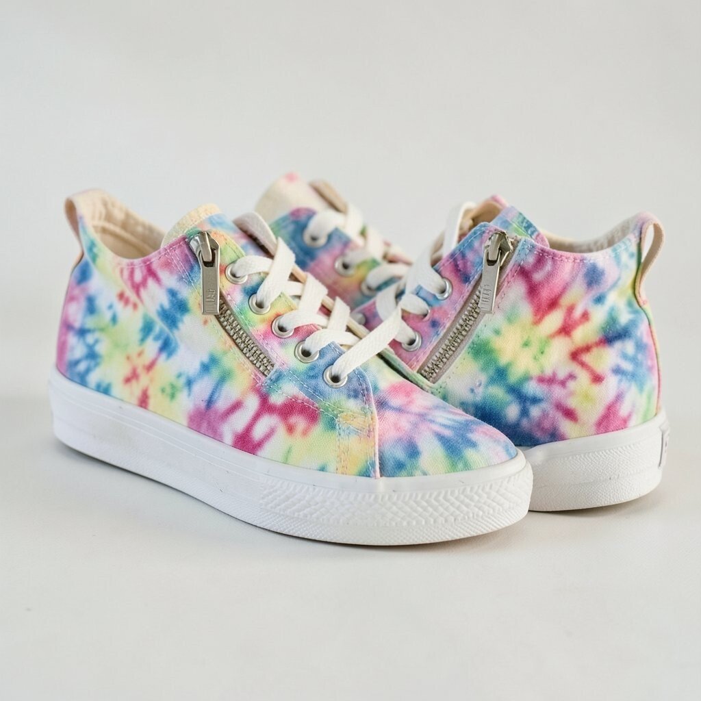Side zipper tie-dye sneakers make getting dressed easier while still looking stylish. The zipper adds a cool detail that stands out against the colorful canvas.