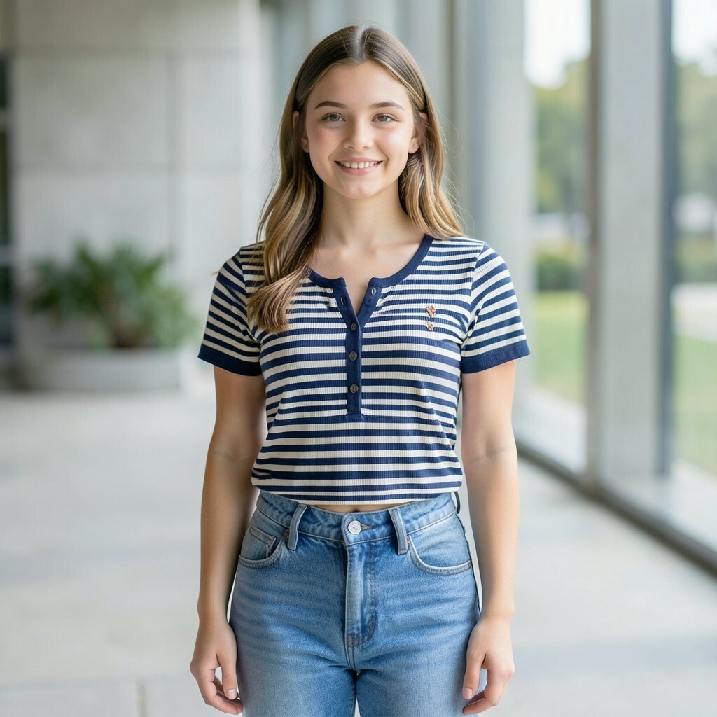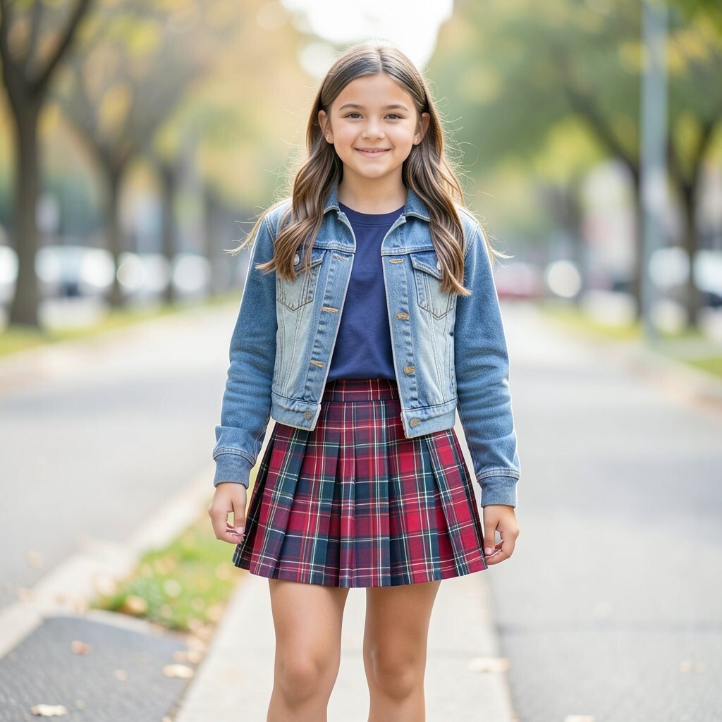 Pair it with a simple top to balance the look. This outfit is perfect for school or casual outings, adding a touch of elegance to your day.