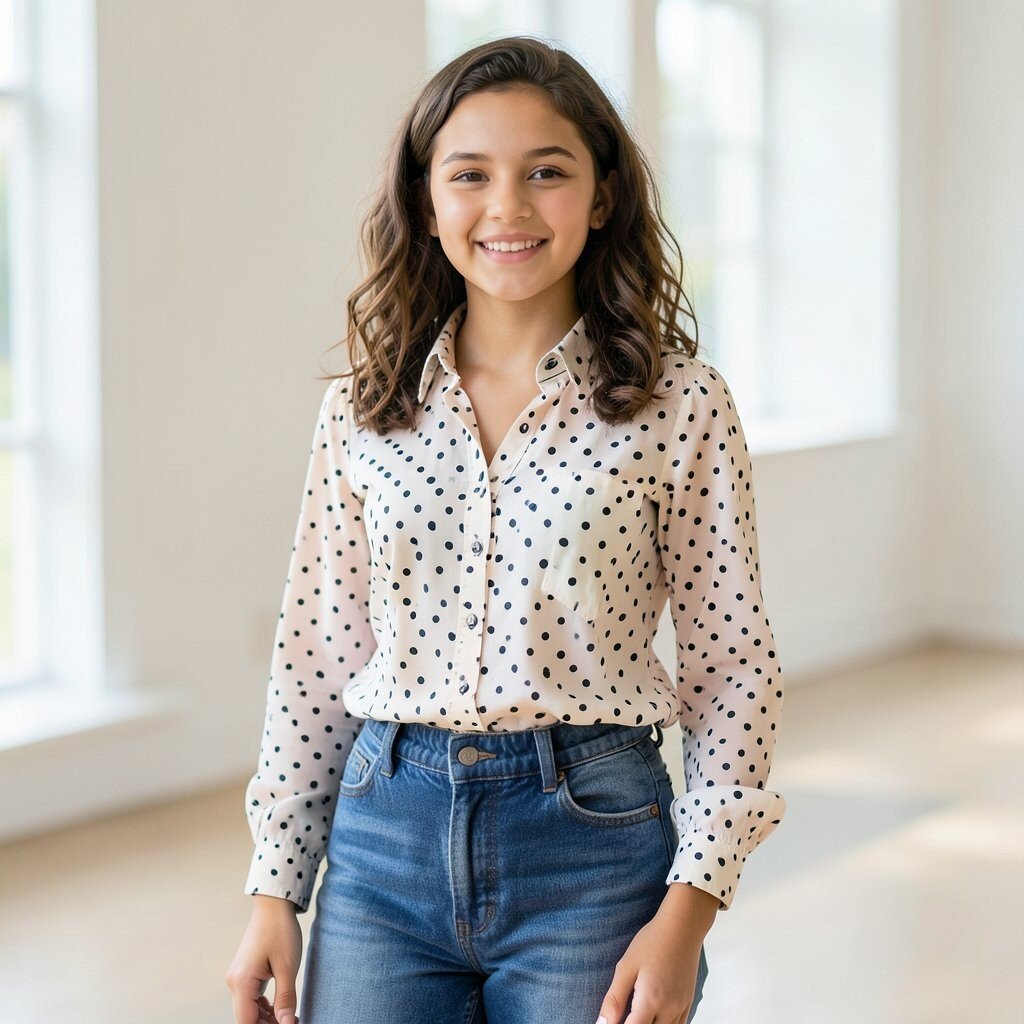 A polka dot blouse adds a playful touch to your wardrobe. It’s perfect for both casual and formal settings.