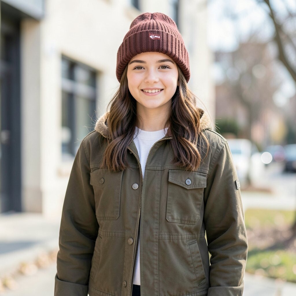 A knit beanie is a cute way to keep warm and stylish during the colder months. It adds a playful touch to your outfit.