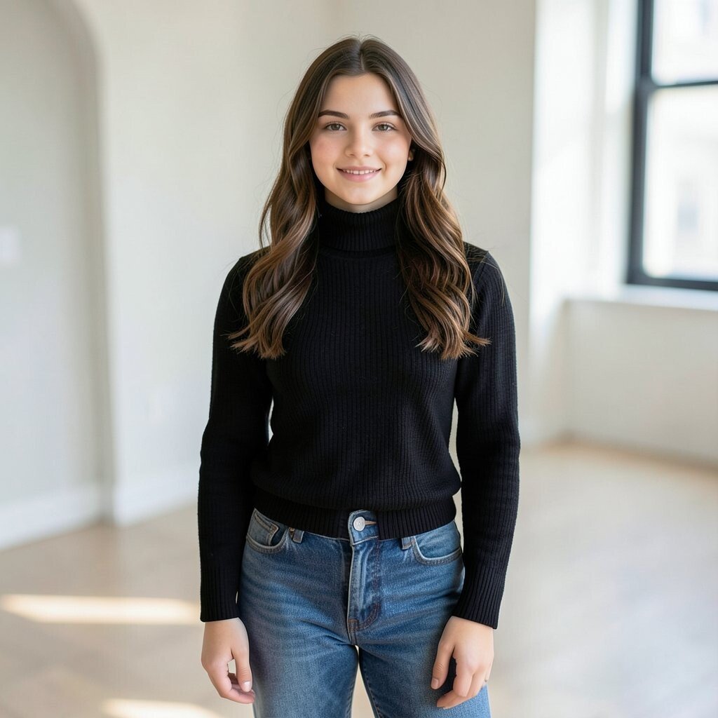 The black turtleneck is a versatile piece that screams sophistication. It’s perfect for layering or wearing on its own.