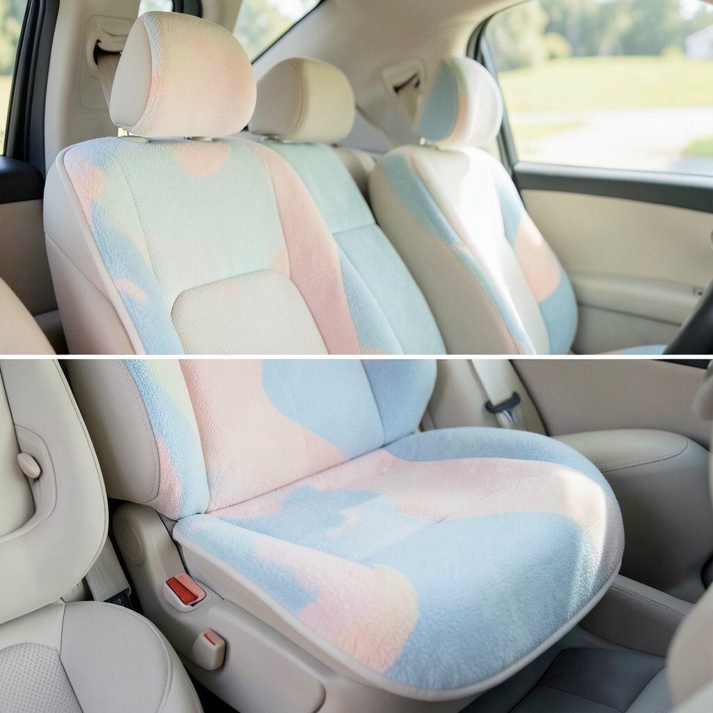 Pastel seat covers add a gentle and calming effect to your car. Think soft pinks, blues, and yellows.