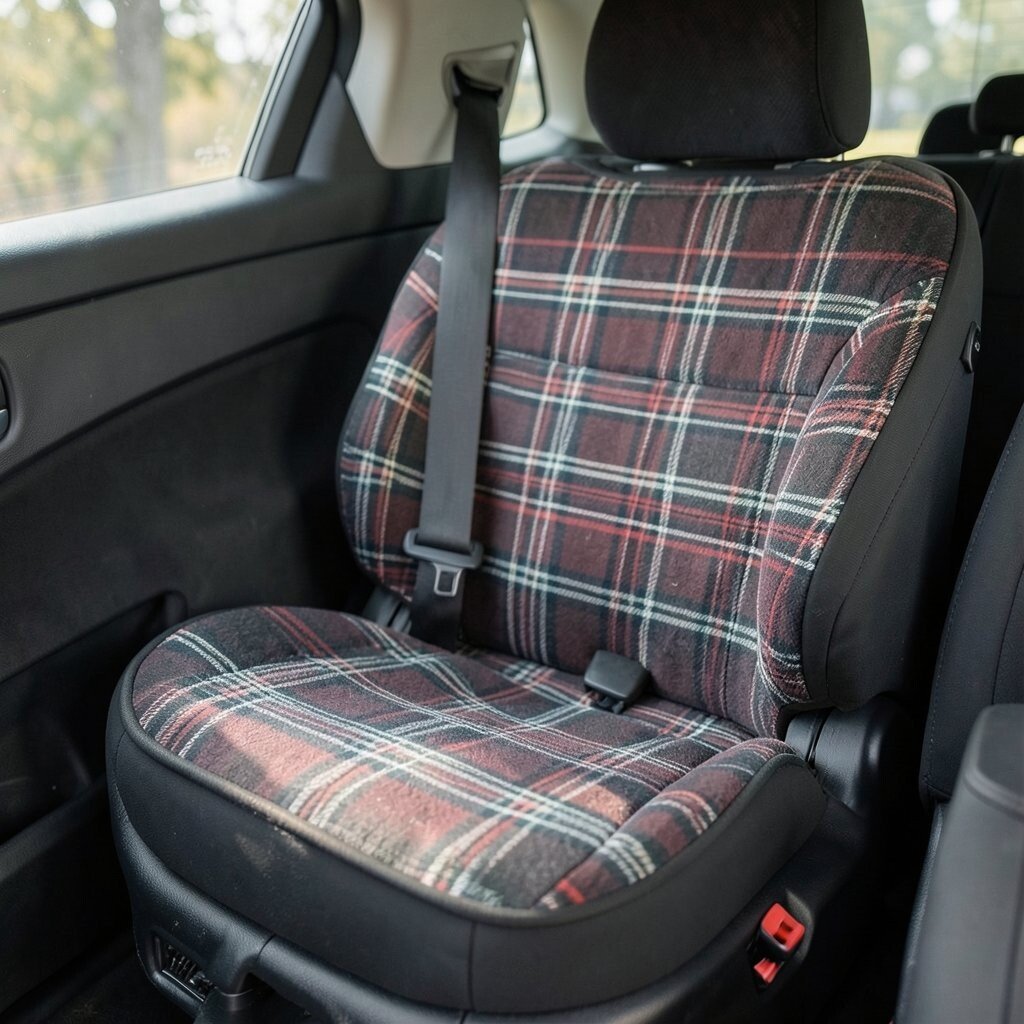 Plaid seat covers give your car a timeless and cozy look. They remind you of a snug flannel shirt on a chilly day.