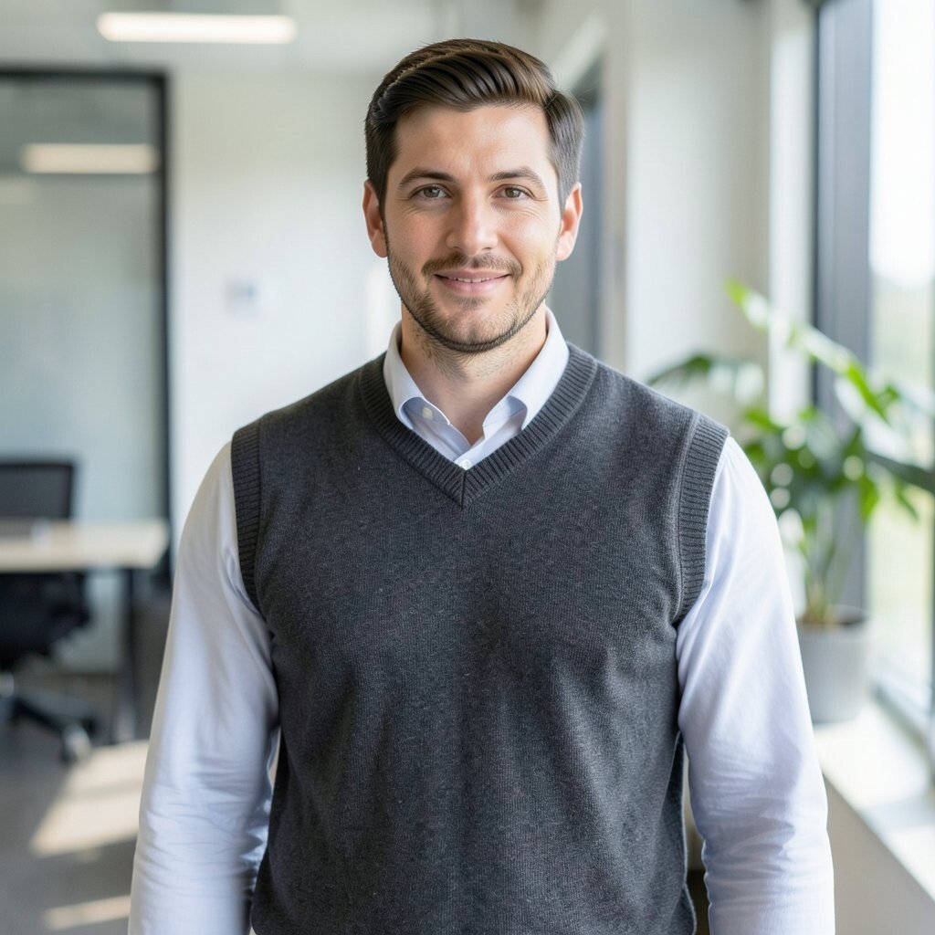 A sweater vest over a collared shirt brings a smart, playful look that feels current. The layers add depth, and the collar gives a neat frame around the face.