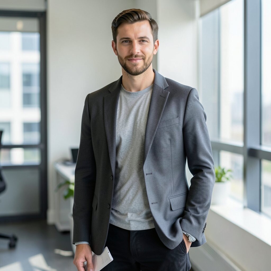 A blazer over a plain tee is one of the easiest ways to look ready for work without trying too hard. The blazer gives shape, and the tee keeps it relaxed.