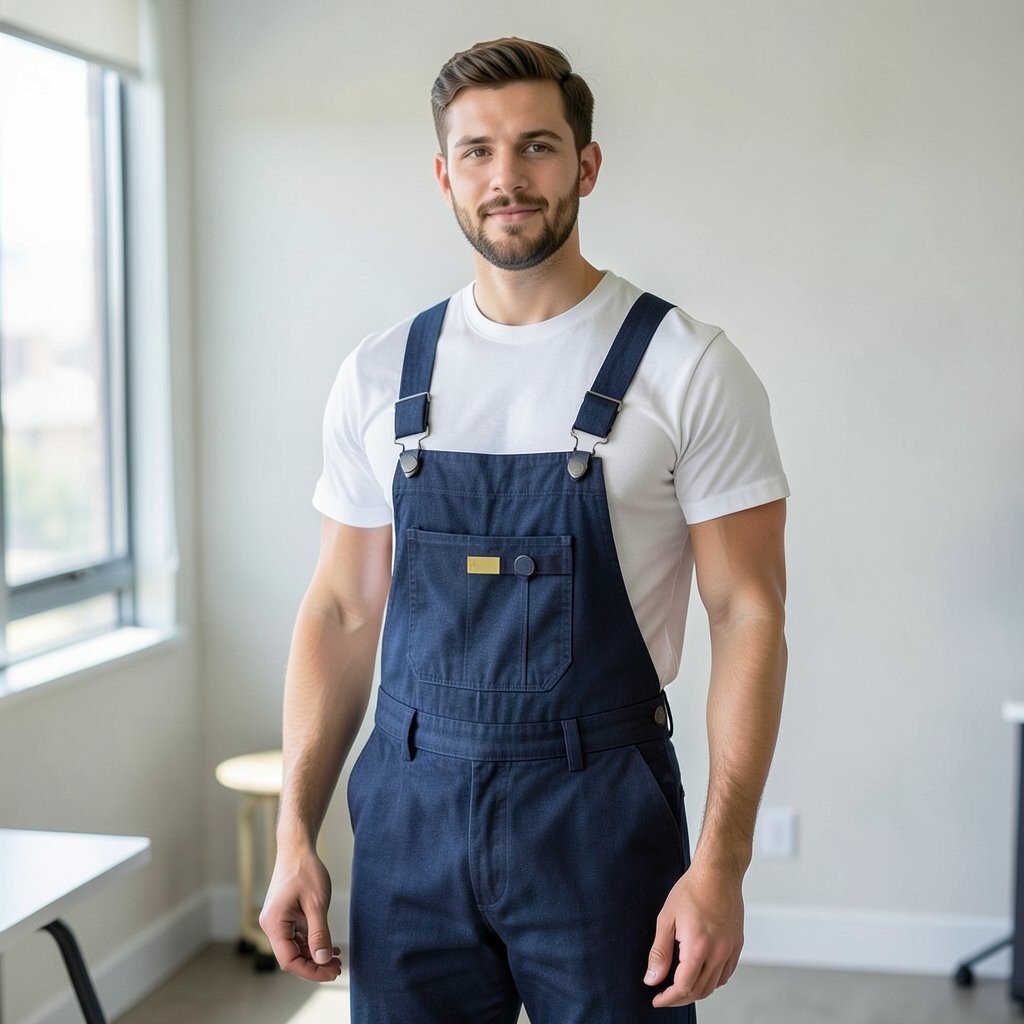 This outfit is best when the overalls have a smooth cut and a polished fabric. A fitted or straight tee underneath helps the whole outfit look intentional. You can add a blazer or cardigan if you want a more finished feel.