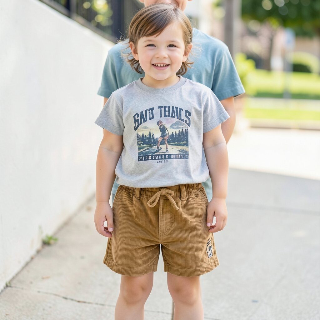 A vintage graphic tee paired with corduroy shorts creates a retro look. It’s cool and comfortable for summer days.