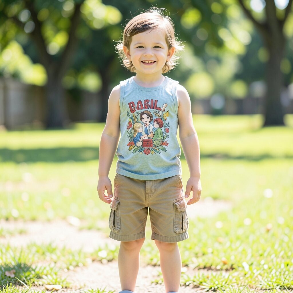A graphic tank top paired with cargo shorts creates an adventurous look. Choose a tank top with your child’s favorite character or design.