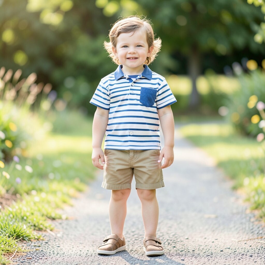 Nautical stripes are a timeless summer trend. Pairing them with khaki shorts creates a classic, coastal look.