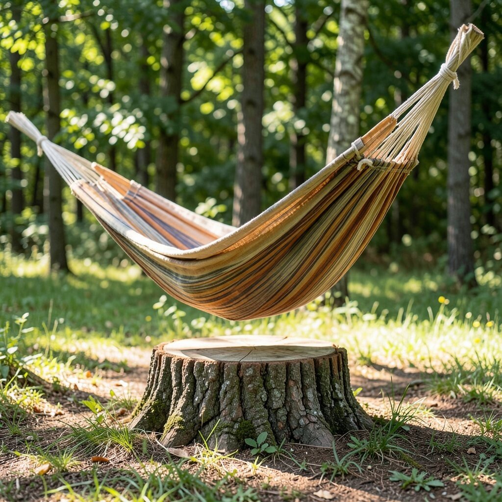 Tree Stump Base Hammock Use a tree stump as a base for your hammock. It adds a natural, earthy touch to your decor.