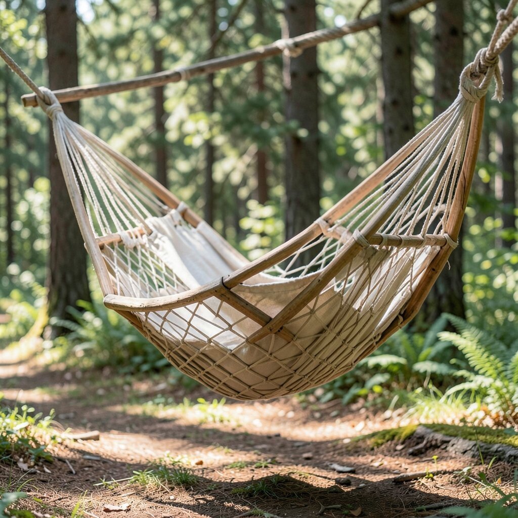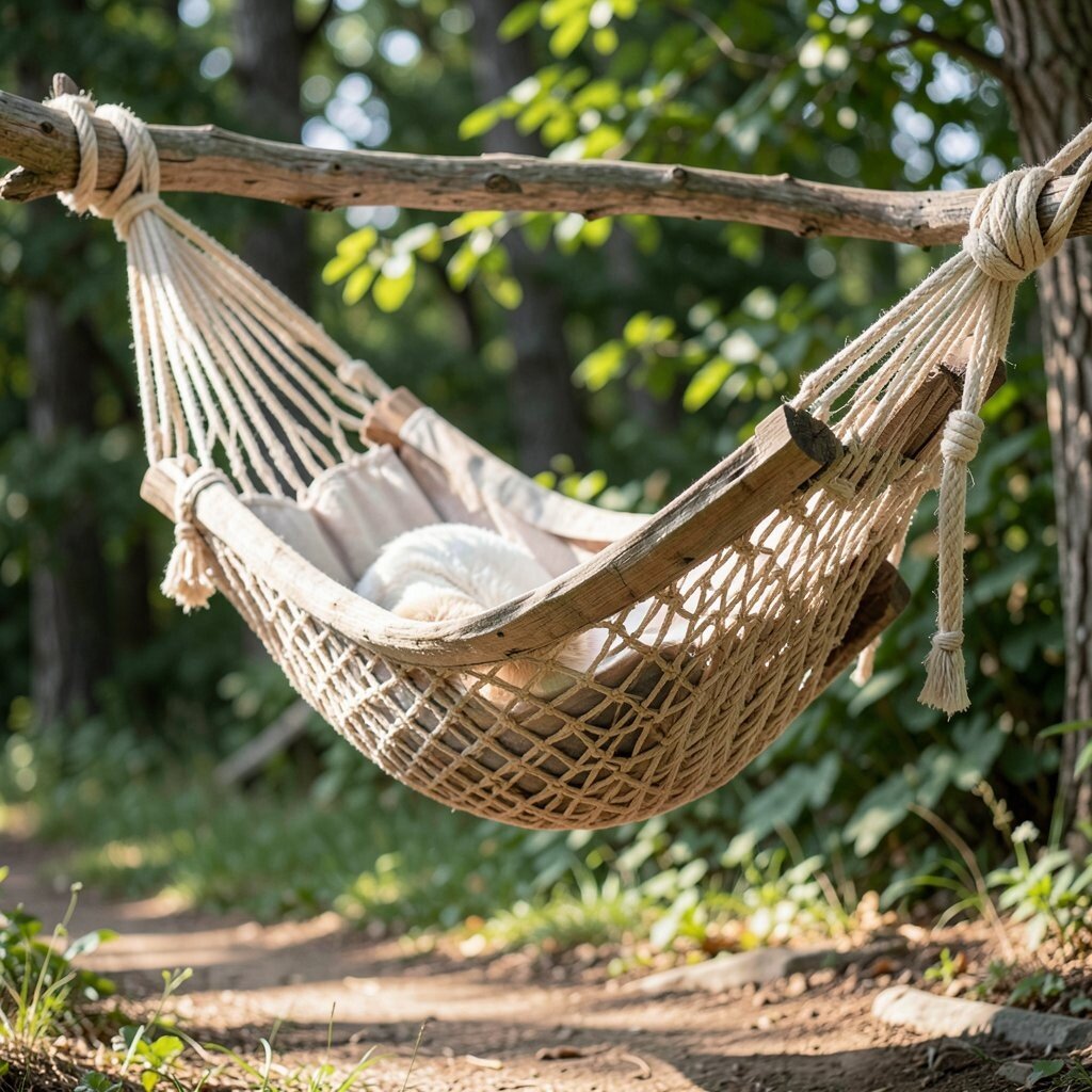 Branch and Rope Hammock Combine branches and rope for a hammock that feels like a forest retreat. It’s perfect for nature lovers.