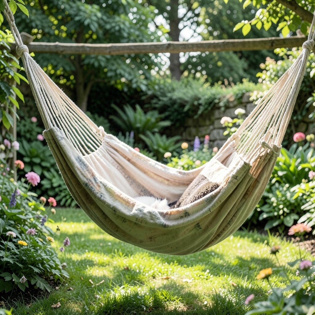 Hanging Garden Hammock Imagine a hammock that not only supports your cat but also holds small potted plants. It brings a bit of nature indoors.