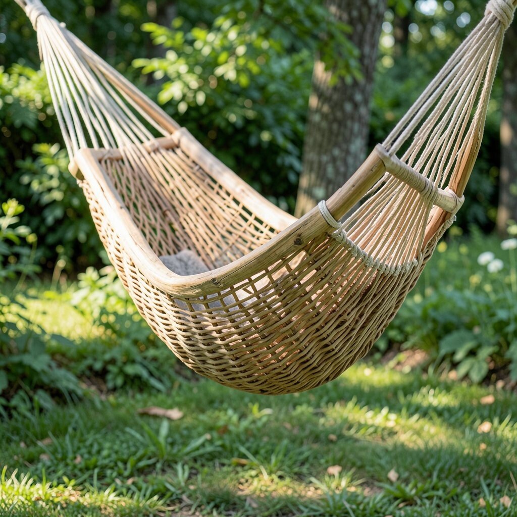 Rattan and Wood Hammock Combine rattan and wood for a hammock that’s both comfortable and chic. It’s perfect for a bohemian-themed room.