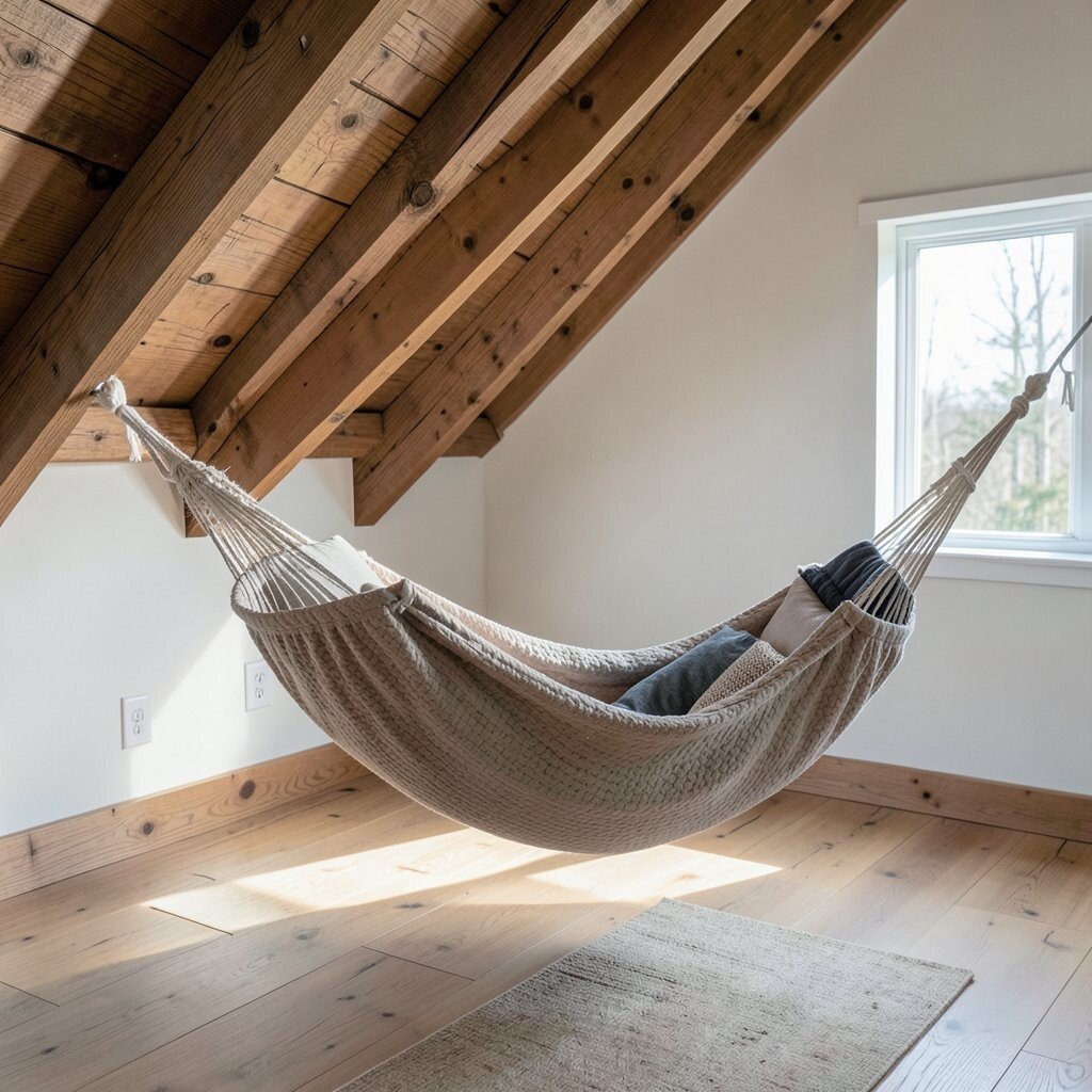 Attic Adventure Install a hammock in the attic for a unique adventure space. It’s a great way to utilize an often-overlooked area.