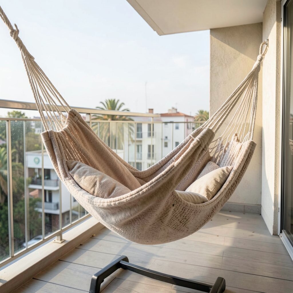 Balcony Bliss For those with outdoor space, a hammock on the balcony offers fresh air and sunshine. It’s a safe way for indoor cats to get a taste of the outdoors.