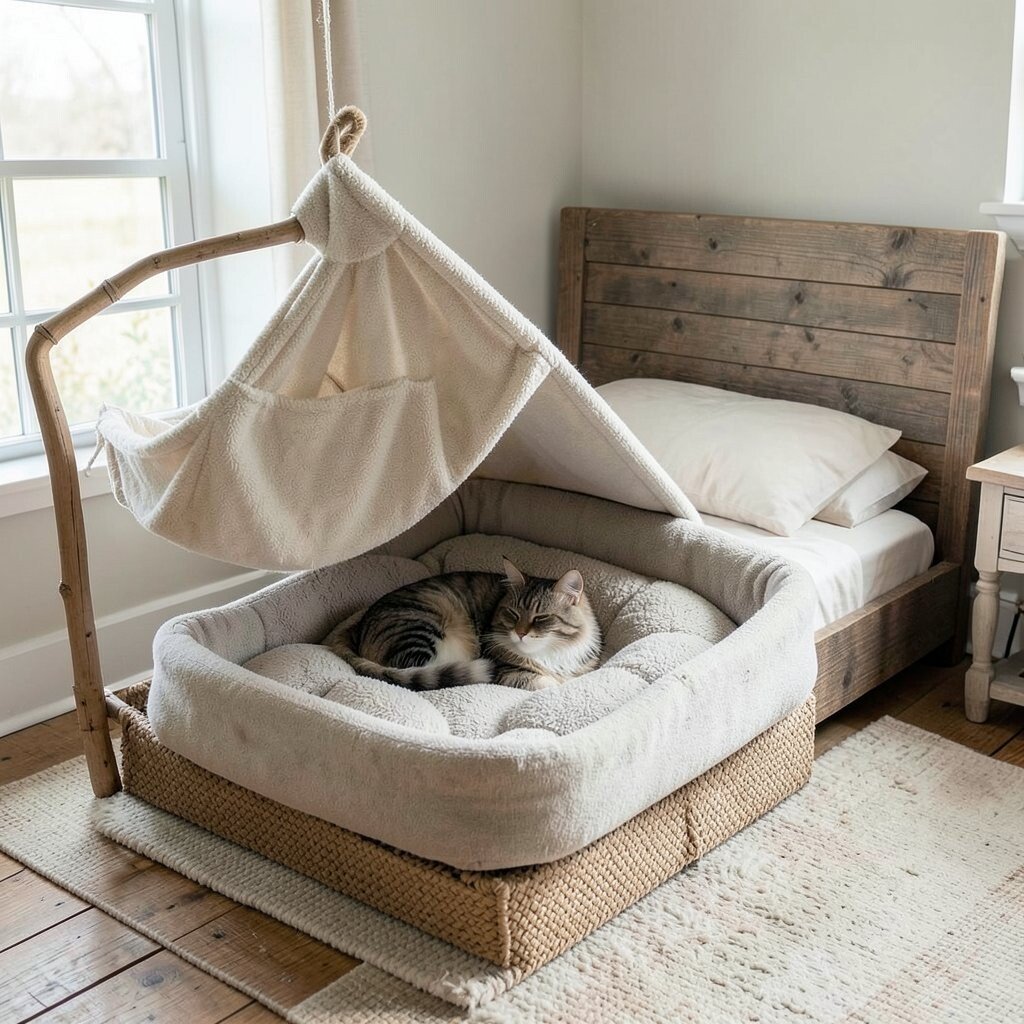 Place it near a window to let your cat soak up the sun while enjoying the view. Pair it with a cozy knitted blanket for added warmth. This hammock is a nod to simpler times with modern comfort.