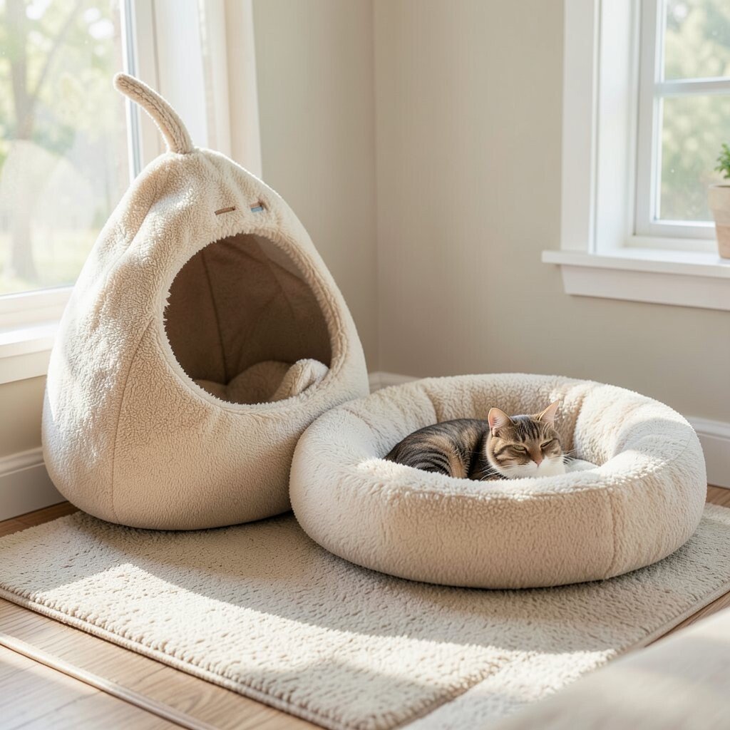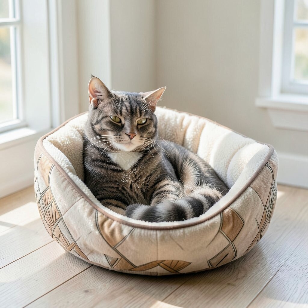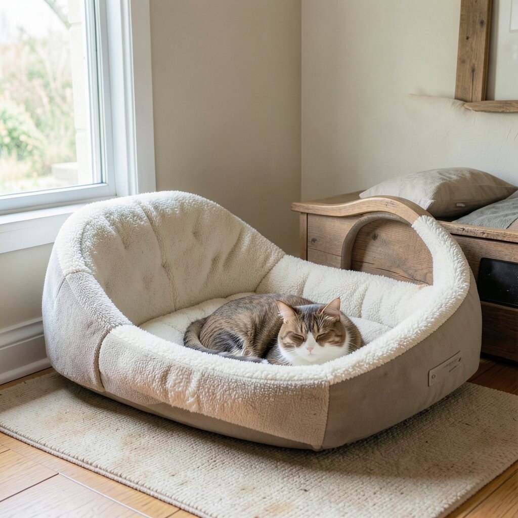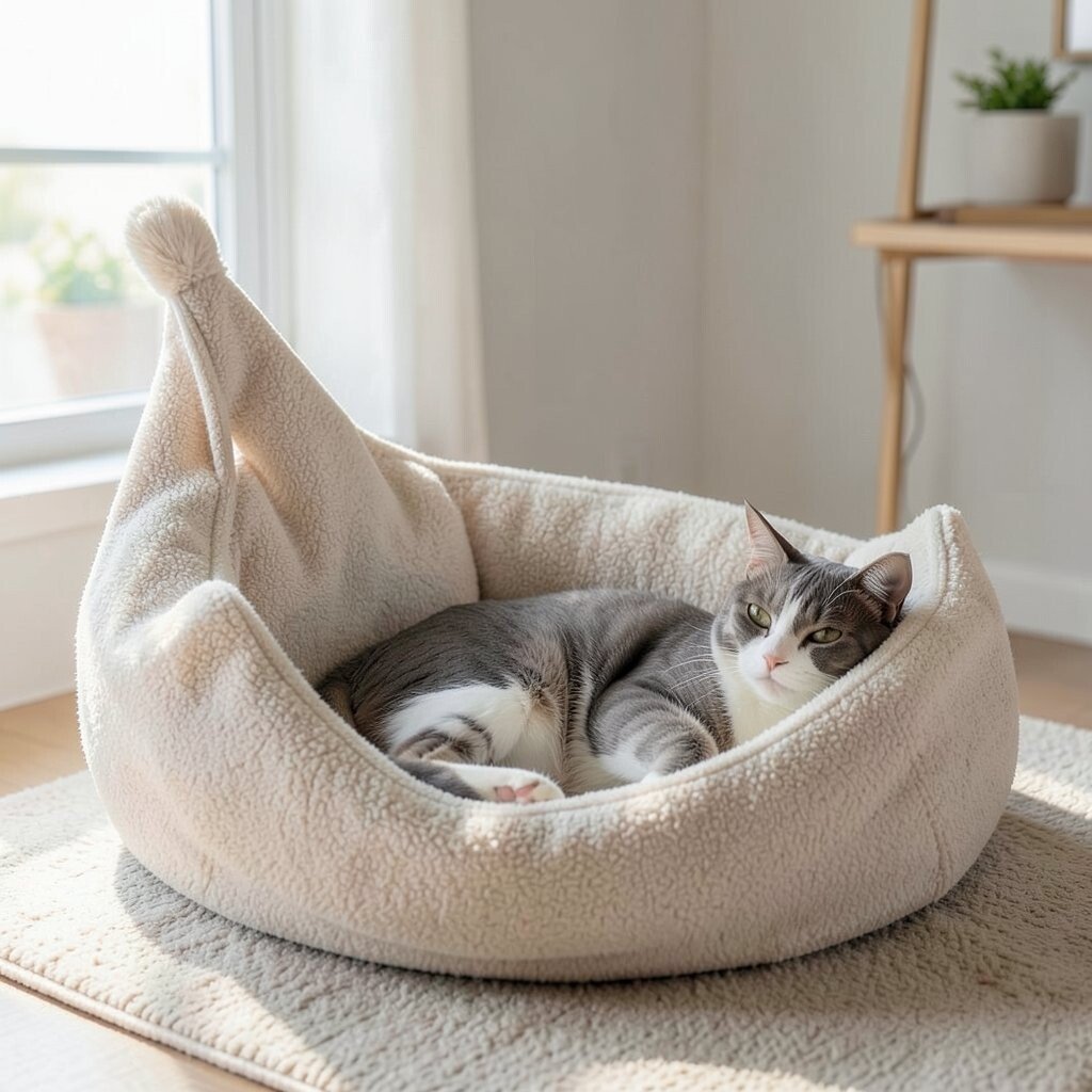 The neutral tones blend seamlessly with any decor. Add a recycled blanket for an eco-chic touch. It’s a bed that lets your cat rest easy and green.
