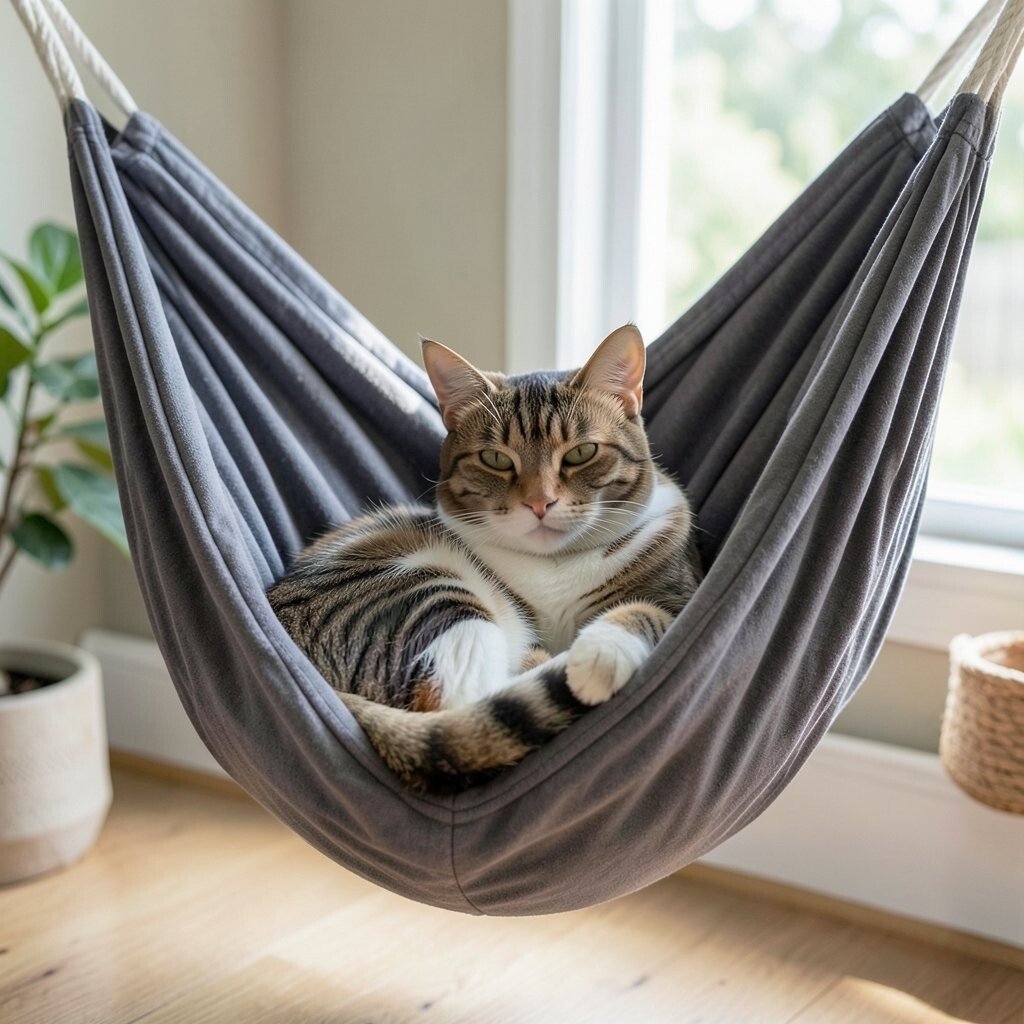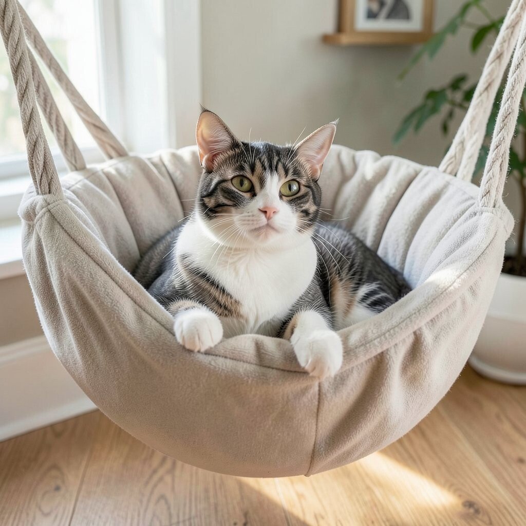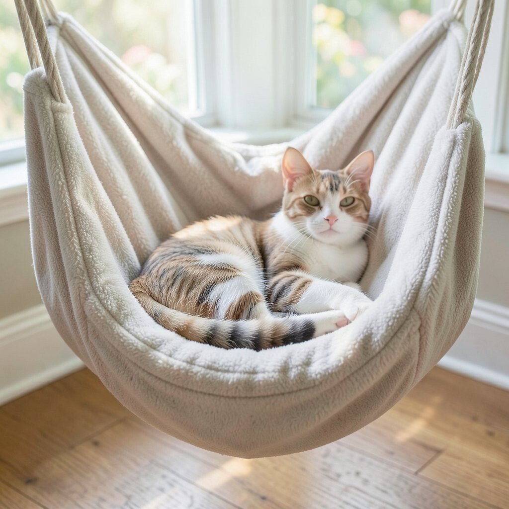 This hammock is perfect for a cat that loves a cozy, rustic atmosphere. Its simplicity and comfort make it a timeless choice. Pair it with a rustic throw blanket for added warmth.