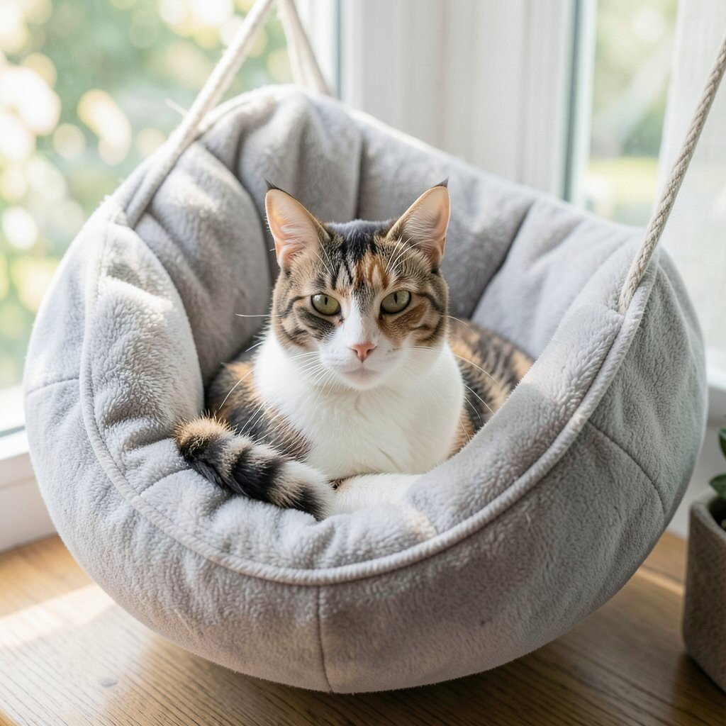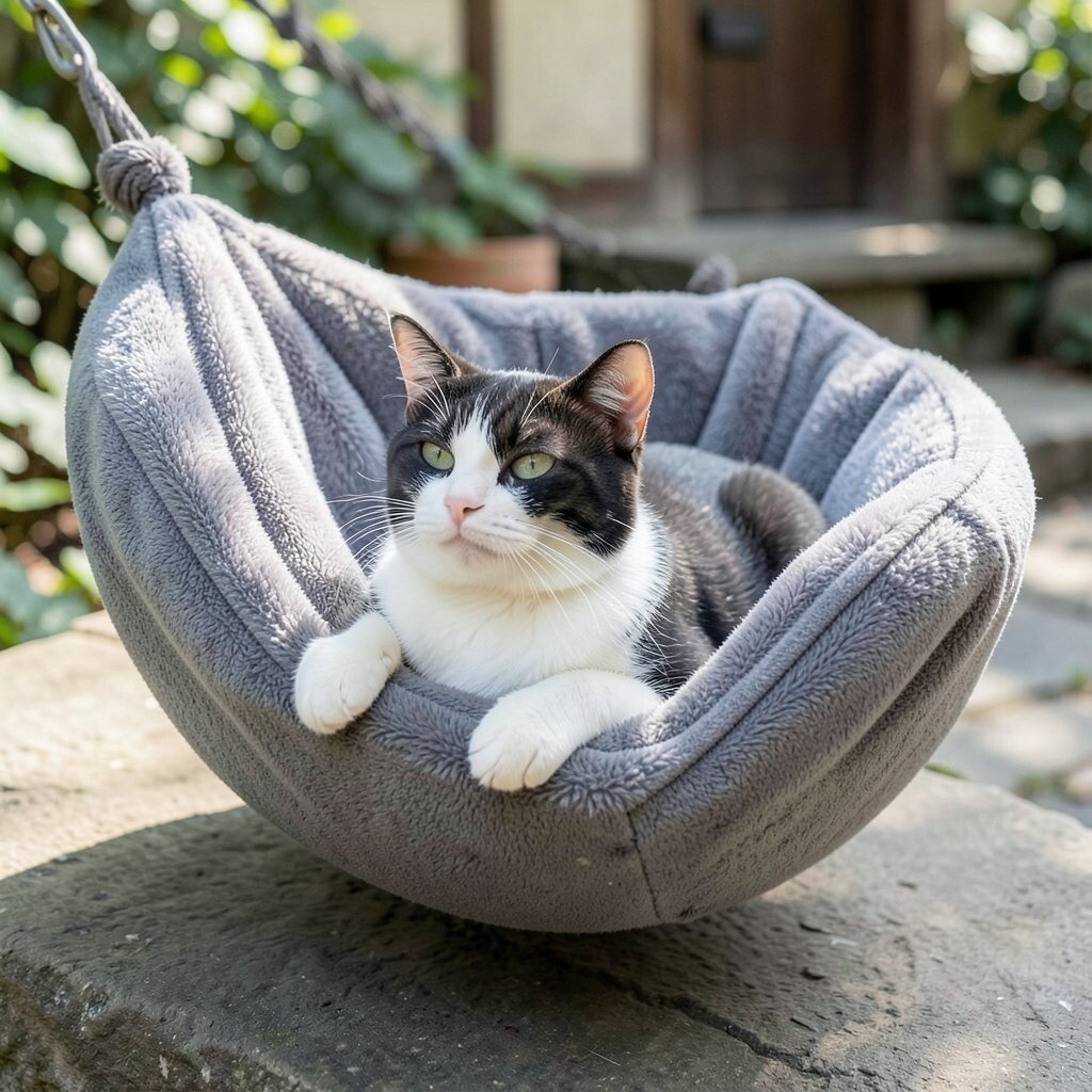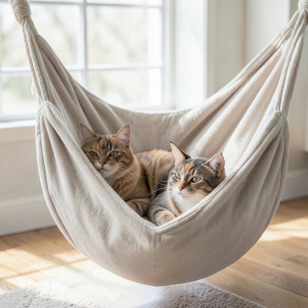 This hammock is perfect for a cat that loves a cozy, rustic atmosphere. Its simplicity and comfort make it a timeless choice. Pair it with a rustic throw blanket for added warmth.