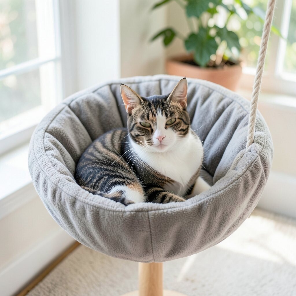 This hammock is perfect for the imaginative cat that loves to dream. It pairs beautifully with nature-inspired decor. Adding a few faux plants can enhance the forest feel.