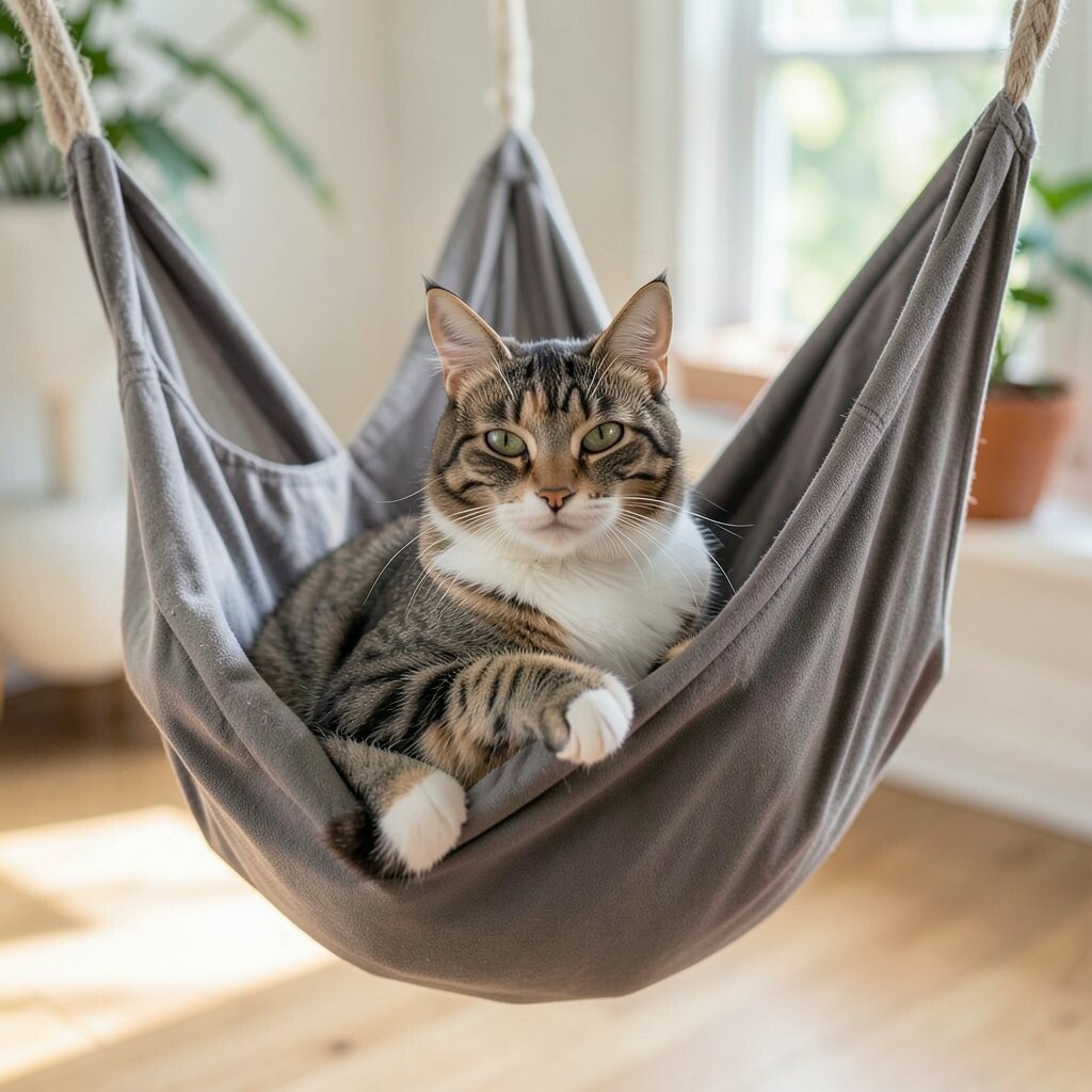Imagine a hammock that feels like resting on a fluffy cloud. The Cozy Cloud Hammock is made with soft, plush fabric that cradles your cat in comfort. Its gentle sway mimics the soothing motion that cats love.