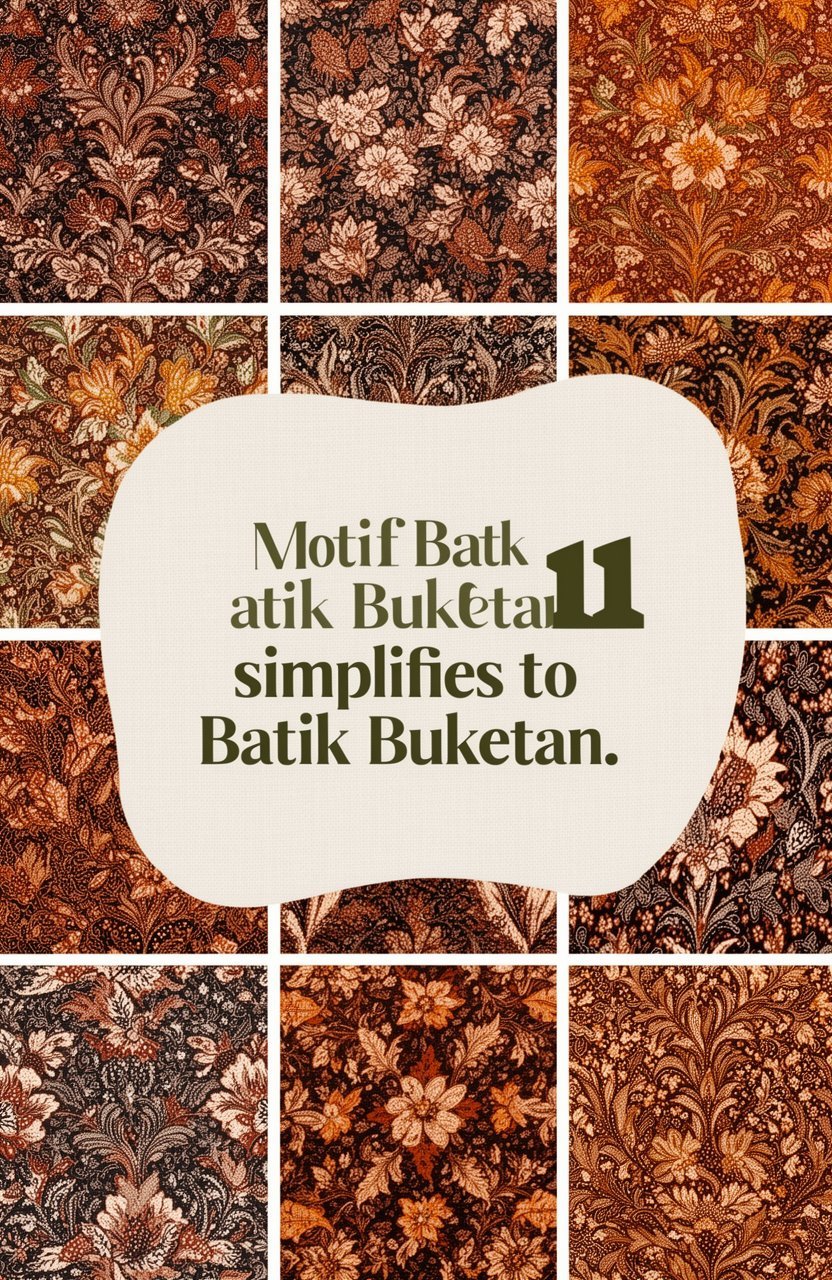 Motif batik buketan menampilkan bentuk pohon atau rangkaian bunga yang lengkap, sering dilengkapi burung atau kupu-kupu. Nama-nama untuk motifnya antara lain adalah Pring Sedapur, Kelapa Setundun, Soko Cina, dan Kembang